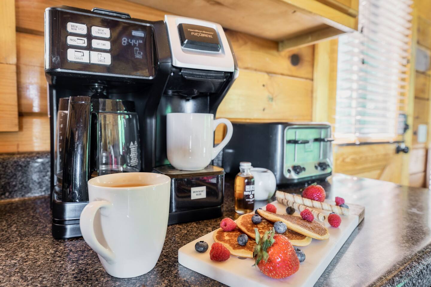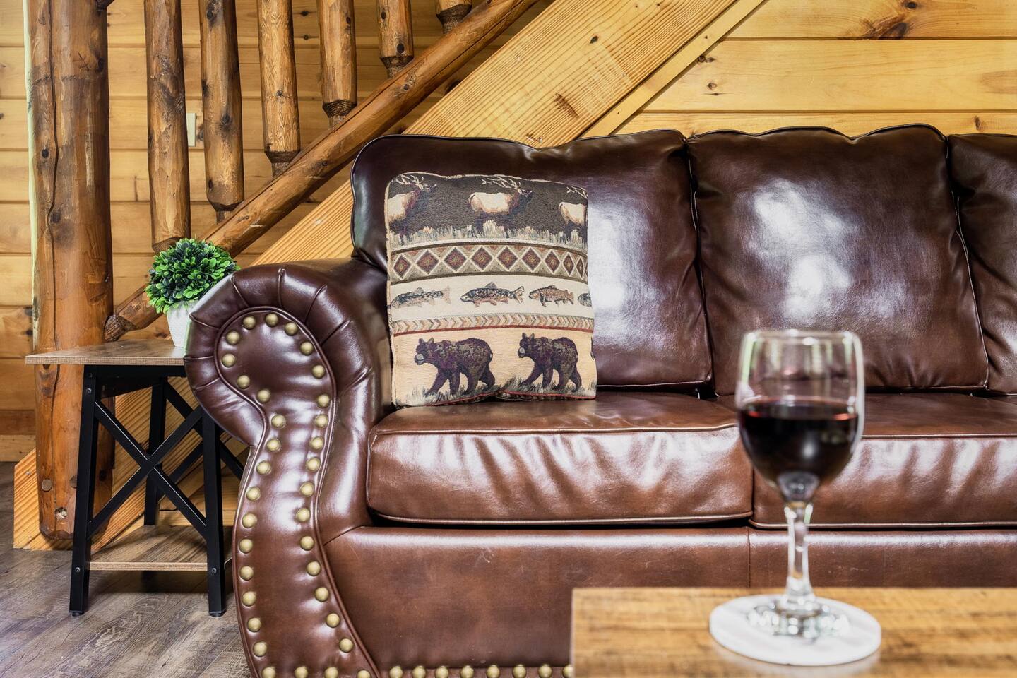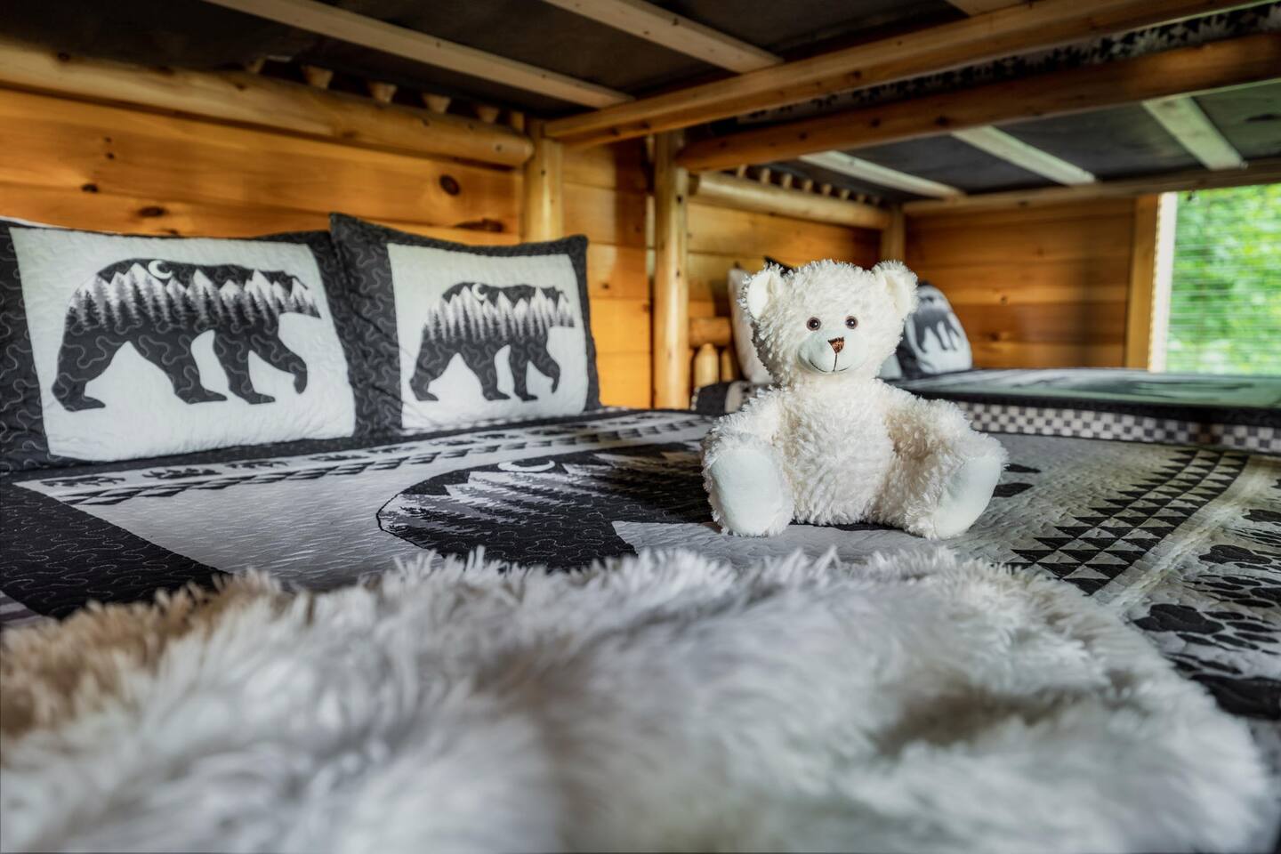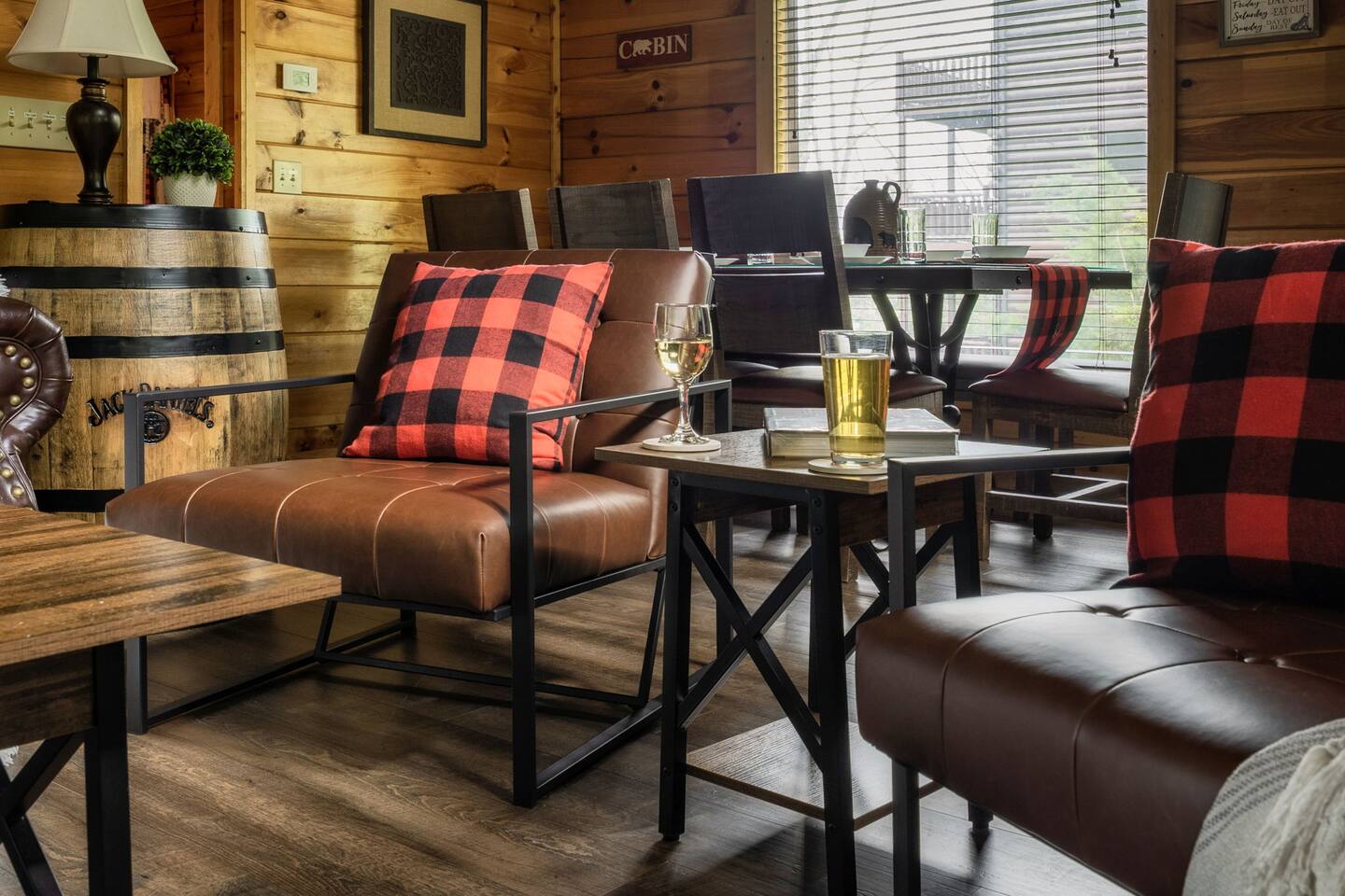 ✨ Top Features at a Glance: 🎬 Private Theater Room 🛁 Outdoor Hot Tub with Mountain Views 🔥 Gas Firepit for S’mores & Stargazing 🎮 Multicade, Foosball & Air Hockey 📶 High-Speed Wi-Fi & Roku TVs in Every Room 🛏️ Sleeps 14 | 4 Bedrooms | 3 Scenic Decks 🐾 Pet-Friendly | Self Check-In | Ample Parking 🎣Catch-and-release pond near the resort entrance 📍Prime mountainside location near Dollywood, The Island, and Pigeon Forge Welcome to Bear Time Cabin - a spacious three-level Smoky Mountain escape designed for families, friends, and unforgettable group getaways. Step into the main living area where plush leather seating, a gas fireplace, and a 55” Roku TV invite cozy conversations and downtime. Descend to your private cinematic theater, complete with a 70” screen and 10 authentic theater seats - the ultimate setting for family movie nights. The fully equipped kitchen includes a Keurig Duo, full cookware set, and all the tools needed to whip up your favorite meals. Gather at the dining table for eight, or head out to one of three scenic decks, each offering its own special way to relax and soak in the mountain air: - Upper deck: Start your day with sunrise coffee in the glider chairs, enjoy s’mores by the gas firepit, and end the night stargazing under clear mountain skies - Main-level deck: Fire up the gas grill for a barbecue feast, then enjoy your meal on the picnic table or comfy outdoor seating - Lower-level deck: Soothe tired muscles in the private hot tub while taking in peaceful mountain views Bear Time Cabin sleeps up to 14 guests across 4 bedrooms: - Upper-level king suite with private workspace, foosball table, en-suite bathroom, and direct access to the upper deck - Main-level king bedroom with access to the grill and picnic deck - Lower-level queen bedroom - Lower-level bunk room with 2 queen-over-queen bunk beds, multicade, air hockey, and deck access to the hot tub The two lower-level bedrooms share a Jack-and-Jill bathroom, perfect for families or groups who want connected space and convenience. Each bedroom has its own Roku TV, and strong Wi-Fi throughout makes it easy to stream, work, or stay connected. Bathrooms are stocked with fresh towels and premium toiletries, including shampoo, conditioner, body wash, and hand soap — so no need to overpack. Additional amenities include central heat/AC, a washer/dryer, and self-check-in with a personalized code. The road is fully paved from the main road to the cabin, but there is a short steep section near the gated entrance — please drive with care, especially at night or during winter weather. 🅿️ Parking: Two full-size vehicles can park in the private driveway, with more space available along the fence line and at the catch-and-release pond near the entrance. 📋 Other Notes: No early check-in or late checkout; if available, $50/hour applies Pets allowed with pre-approval and $95 fee per pet, per stay Whether it’s a birthday bash, family reunion, or a well-deserved mountain escape, Bear Time Cabin delivers the views, comfort, and space to make memories that last.