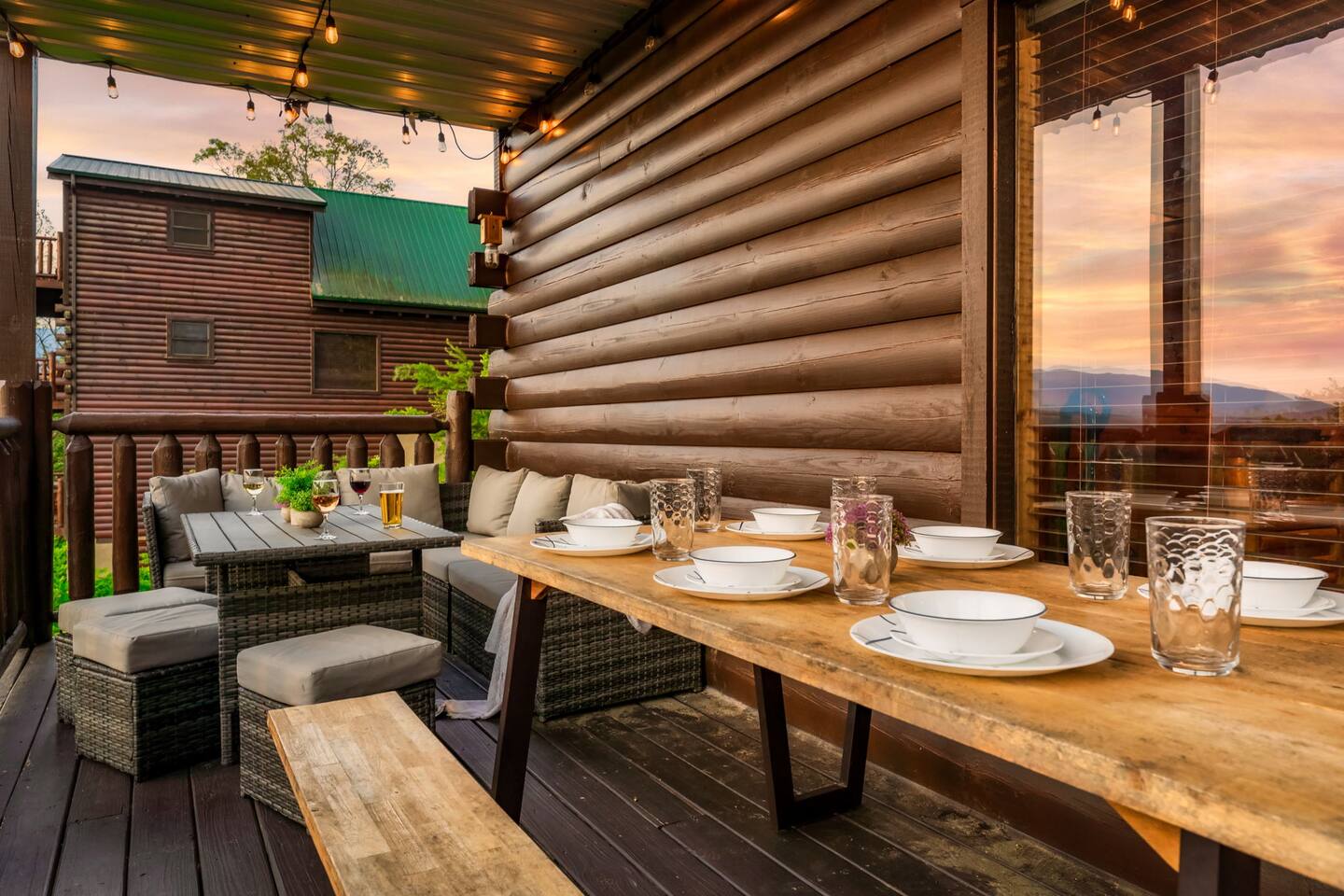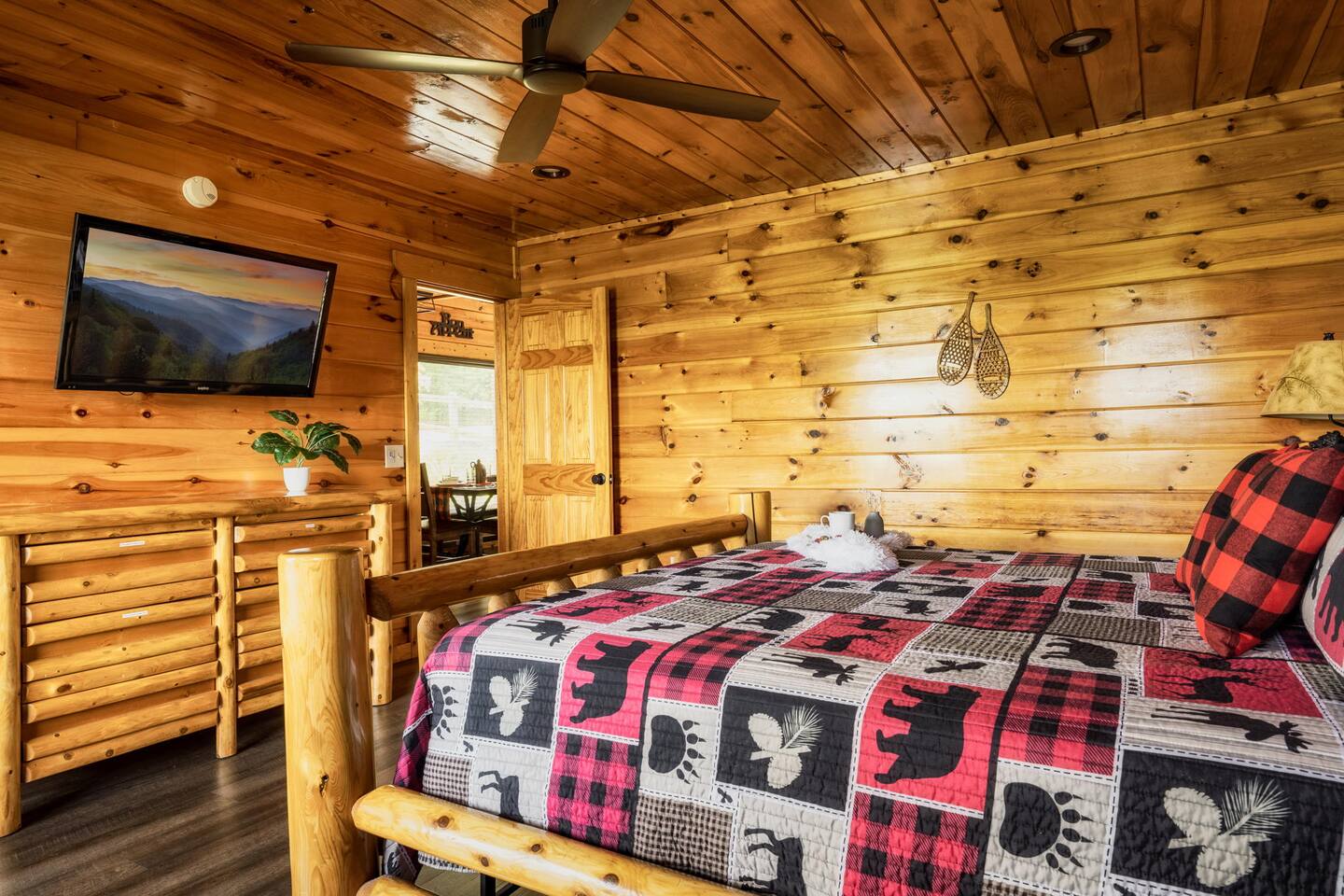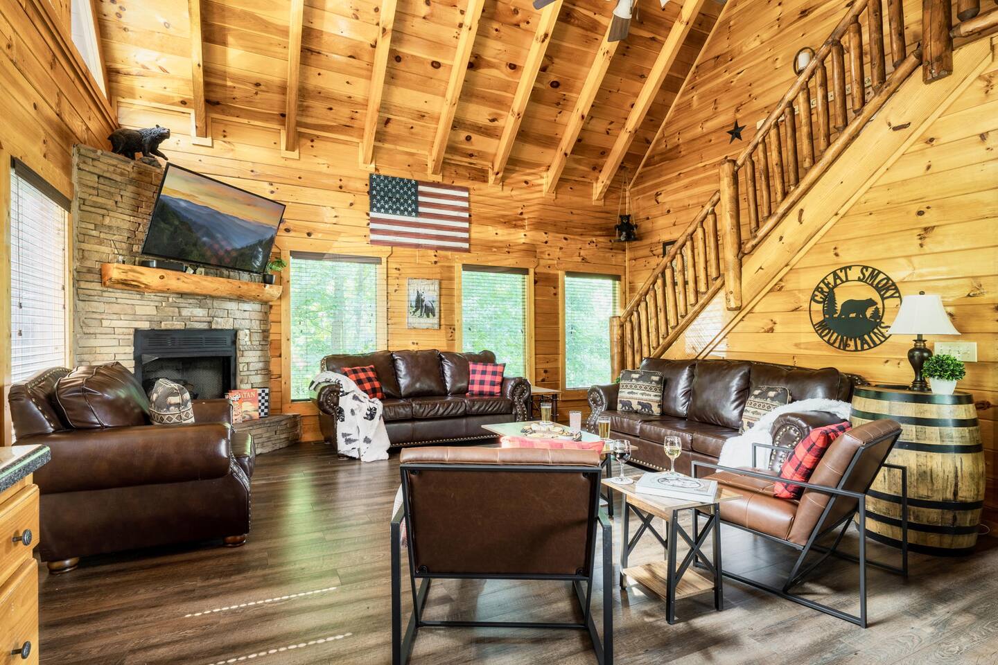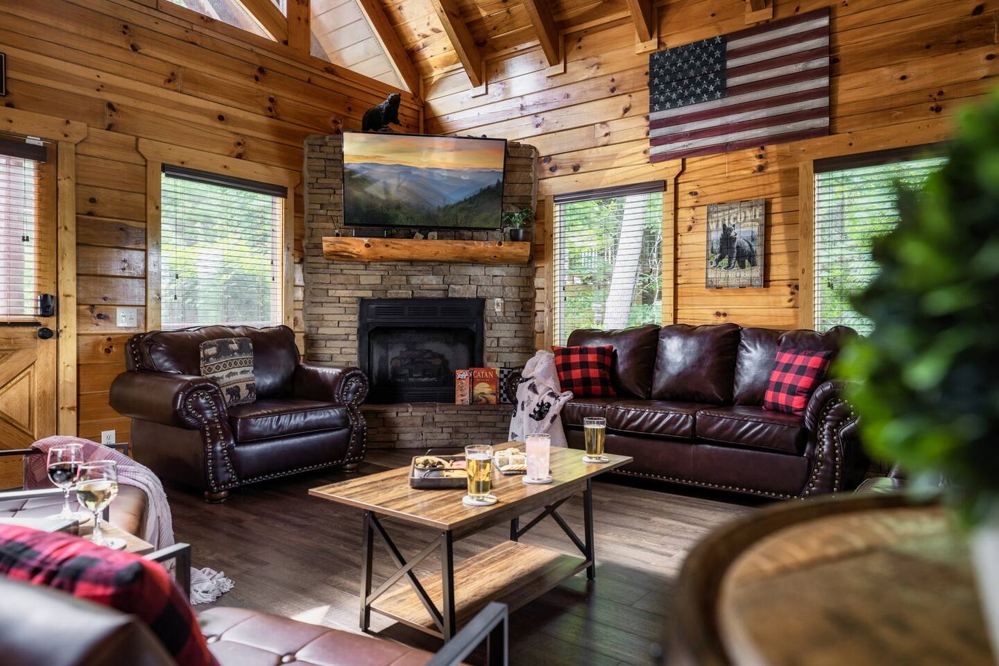 Unwind at Bear Time Cabin - your private Smoky Mountain retreat with a hot tub, cinematic theater room, firepit, and fun for all ages. Sleeps 14 with 4 cozy bedrooms, 3 scenic decks, and glider chairs for sunrise coffee. Perfect for family vacations, group getaways, or celebrations. Peacefully tucked away, yet just minutes from Dollywood and Pigeon Forge. Enjoy movie nights, sunset grilling, and all the comforts of home in this fully stocked, pet-friendly escape with fast Wi-Fi & Roku TVs.