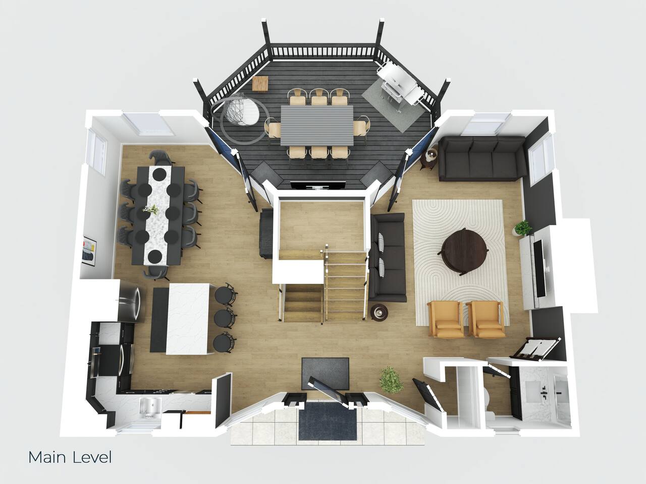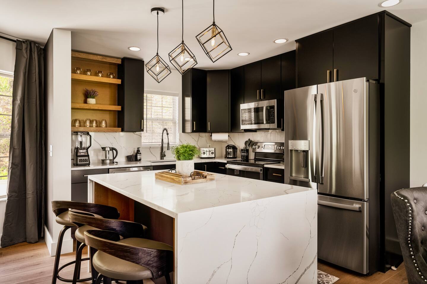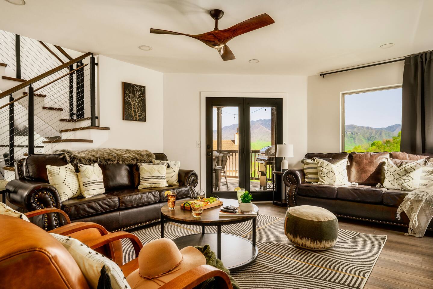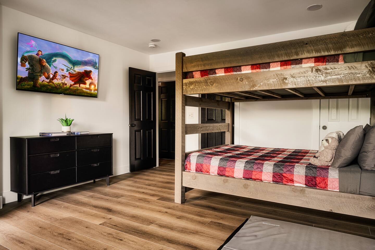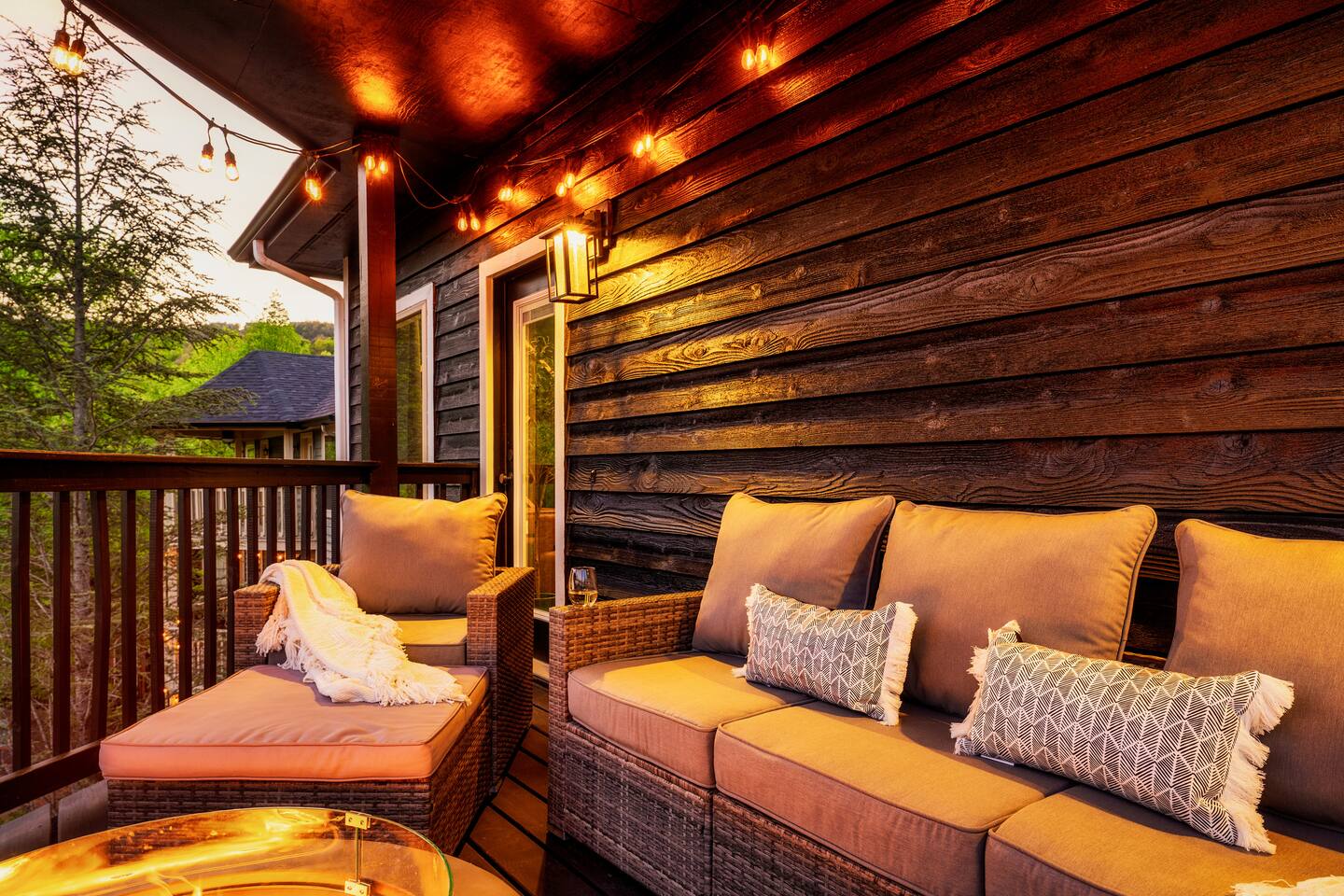 ✹ Unbeatable Breathtaking Views: Three private decks offer stunning mountain vistas, ideal for morning coffee, sunset cocktails, or stargazing by the firepit. ✹ Elegant Living Spaces: The open-concept living area features a striking 3-sided electric fireplace and a 65” smart TV, giving you a cozy, stylish place to unwind. ✹ Culinary Haven: A gourmet kitchen awaits with top-of-the-line appliances, an espresso machine, and a K-brew coffee maker. Enjoy your meals around a spacious dining table for 8, or dine al fresco with the mountains as your backdrop. ✹ Luxurious Bedroom Retreats: Three private bedroom sanctuaries, including a master suite with a king bed, freestanding tub, and private deck access, promise ultimate relaxation. ✹ Perfect Work-Life Balance: The second bedroom includes a work-ready desk, perfect for remote work without sacrificing comfort. ✹ Entertainment Galore: Challenge friends and family in the expansive game room with a pool table, multicade, and Golden Tee golf – plus a fun rock climbing wall for the kids. ✹ Hot Tub Bliss: Soak in a premium hot tub while gazing at the mountains. It’s the ultimate way to unwind after a day of exploring. ✹ Firepit Gatherings: Cozy up around the firepit on a cool mountain night, sharing stories under the stars. Welcome to your luxury mountain retreat in the heart of the Smokies, where modern comfort meets breathtaking natural beauty. As you step into the open-concept living area, you'll be captivated by the stunning 3-sided electric fireplace that serves as the room's centerpiece. Sink into premium leather couches or designer accent chairs while enjoying your favorite entertainment on the impressive 65" smart TV. Just beyond, the main level deck offers your first glimpse of the magnificent mountain panoramas that surround the property. Your culinary adventures begin in our fully equipped kitchen, where sleek stainless steel appliances await your creativity. Start your mornings with the perfect brew from our espresso machine or K-brew coffee maker, then gather with loved ones around the elegant 8-person dining table. For an unforgettable dining experience, step onto the deck where al fresco meals come with a side of stunning mountain views. Each of our three thoughtfully designed bedrooms offers its own private sanctuary. The upper-level primary suite boasts a sumptuous king bed and a luxury ensuite bathroom featuring a free-standing tub, anti-fog mirrors, and private deck access. The second bedroom provides another king bed and a modern workspace perfect for remote work, complete with its own ensuite bathroom. On the lower level, families or groups will appreciate the queen-over-queen bunk bed with a private bath, ensuring comfort and privacy for all guests. Entertainment abounds in our expansive game room, a space designed for creating lasting memories. Challenge your companions to a game of pool, explore over 3,000 classic games on the multicade machine, or perfect your swing with Golden Tee golf. For our younger guests, an exciting rock climbing wall in the bunk room provides additional adventure under adult supervision. The outdoor living spaces truly set our chalet apart, with three private decks showcasing the majesty of the Smokies. Soak in the premium hot tub while drinking in mountain vistas, gather around the outdoor firepit dining table for memorable meals under the stars, or simply unwind in the cozy conversation area by the firepit. We've thought of everything to make your family comfortable, from a Pack 'n Play and highchair to children's dinnerware and essential toiletries. For eco-conscious guests, we're pleased to offer a Level 2 electric vehicle charging station, allowing you to power up your electric vehicle during your stay. With free parking for three vehicles and a perfect location near downtown Gatlinburg, you'll have easy access to local attractions, restaurants, shopping, and mountain activities. Your stay includes complimentary access to resort-style amenities, including three community clubhouses (available from Memorial Day to Labor Day) with amenities including outdoor pools, pickle ball court, tennis court, and a fitness center. Experience the perfect blend of luxury and mountain charm in our welcoming chalet. Whether you're seeking adventure or relaxation, this exceptional retreat provides an unforgettable backdrop for your Gatlinburg getaway. Book now to create lasting memories in the heart of the Smokies!