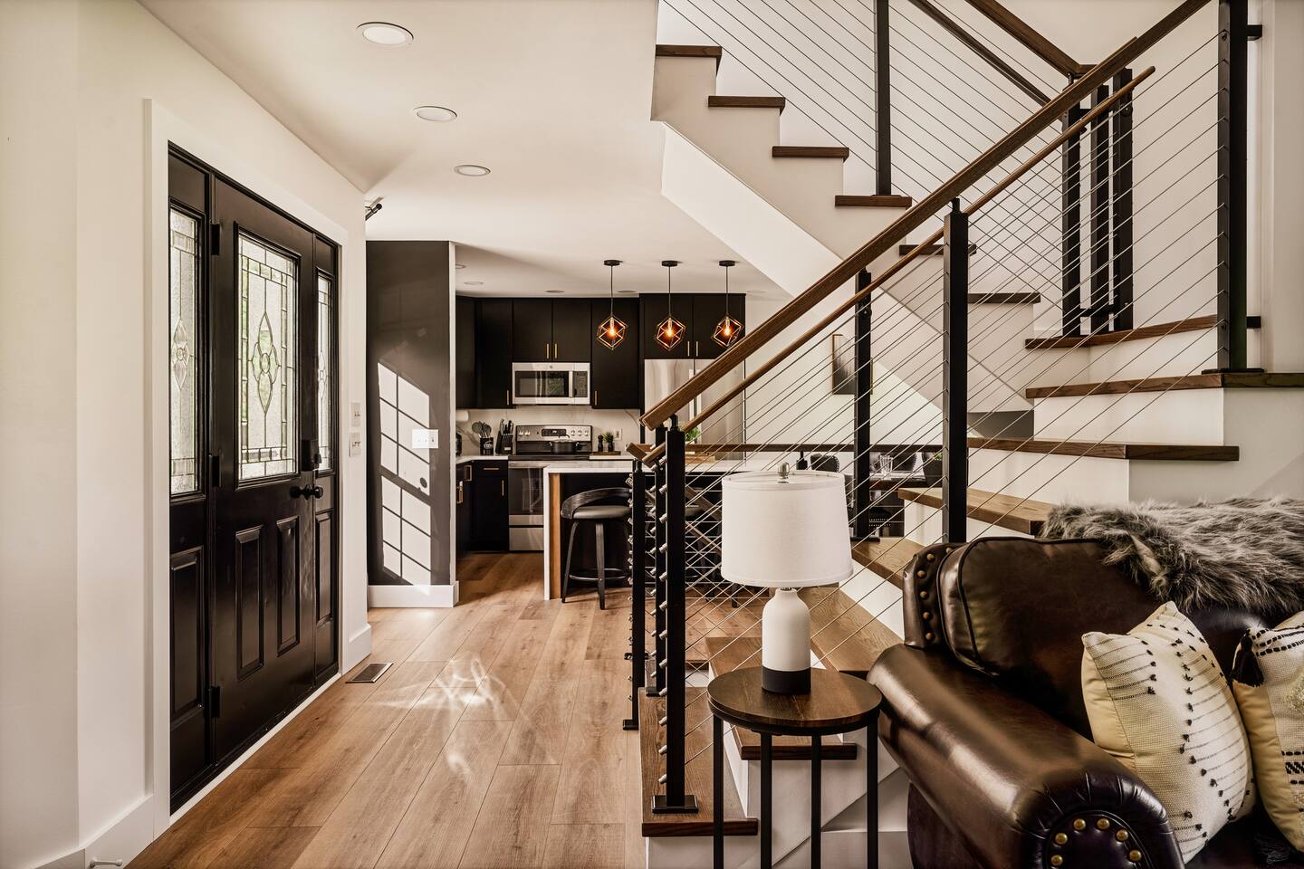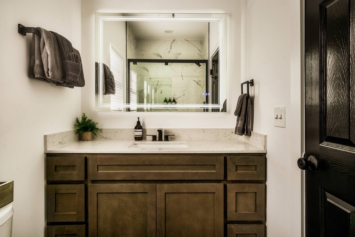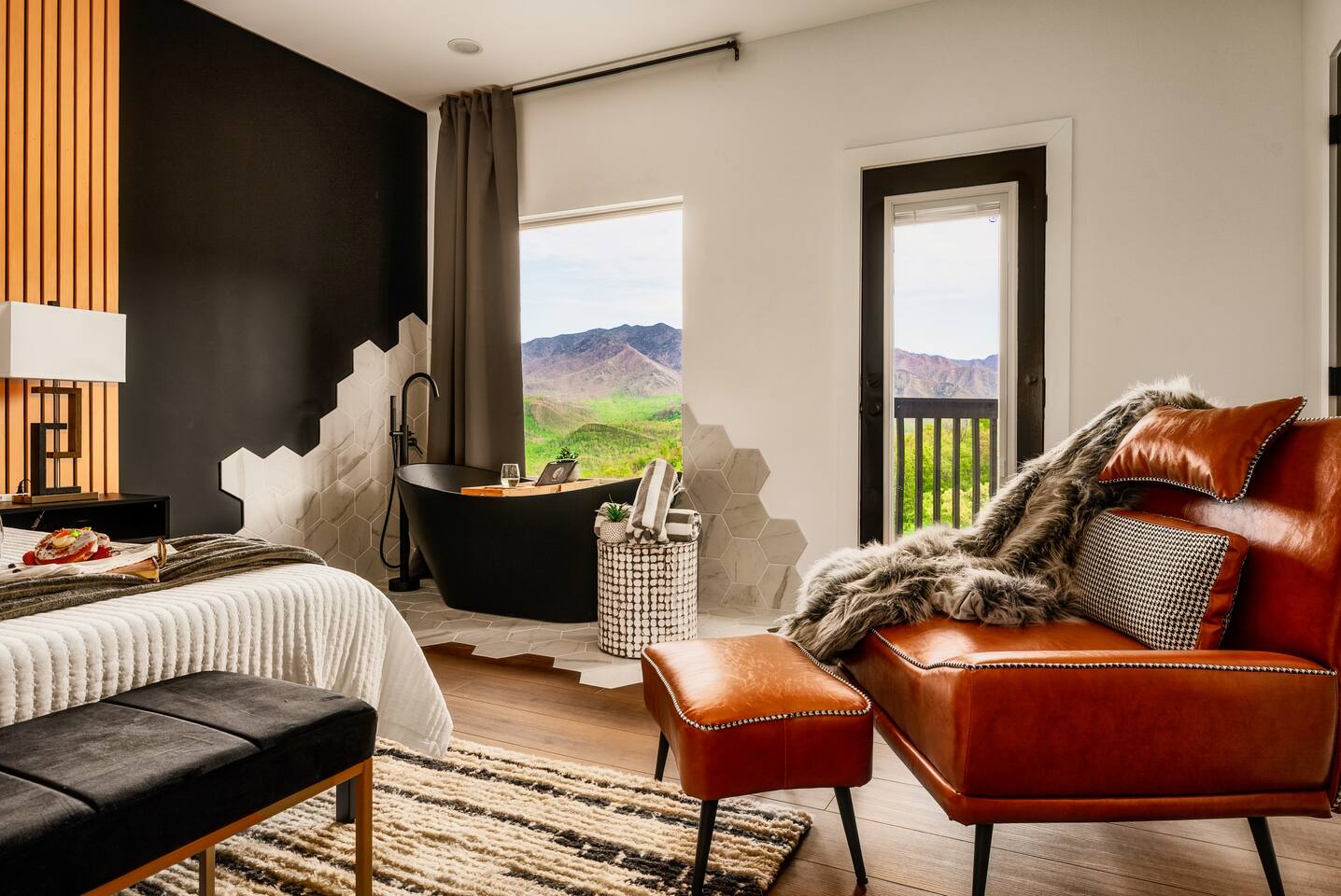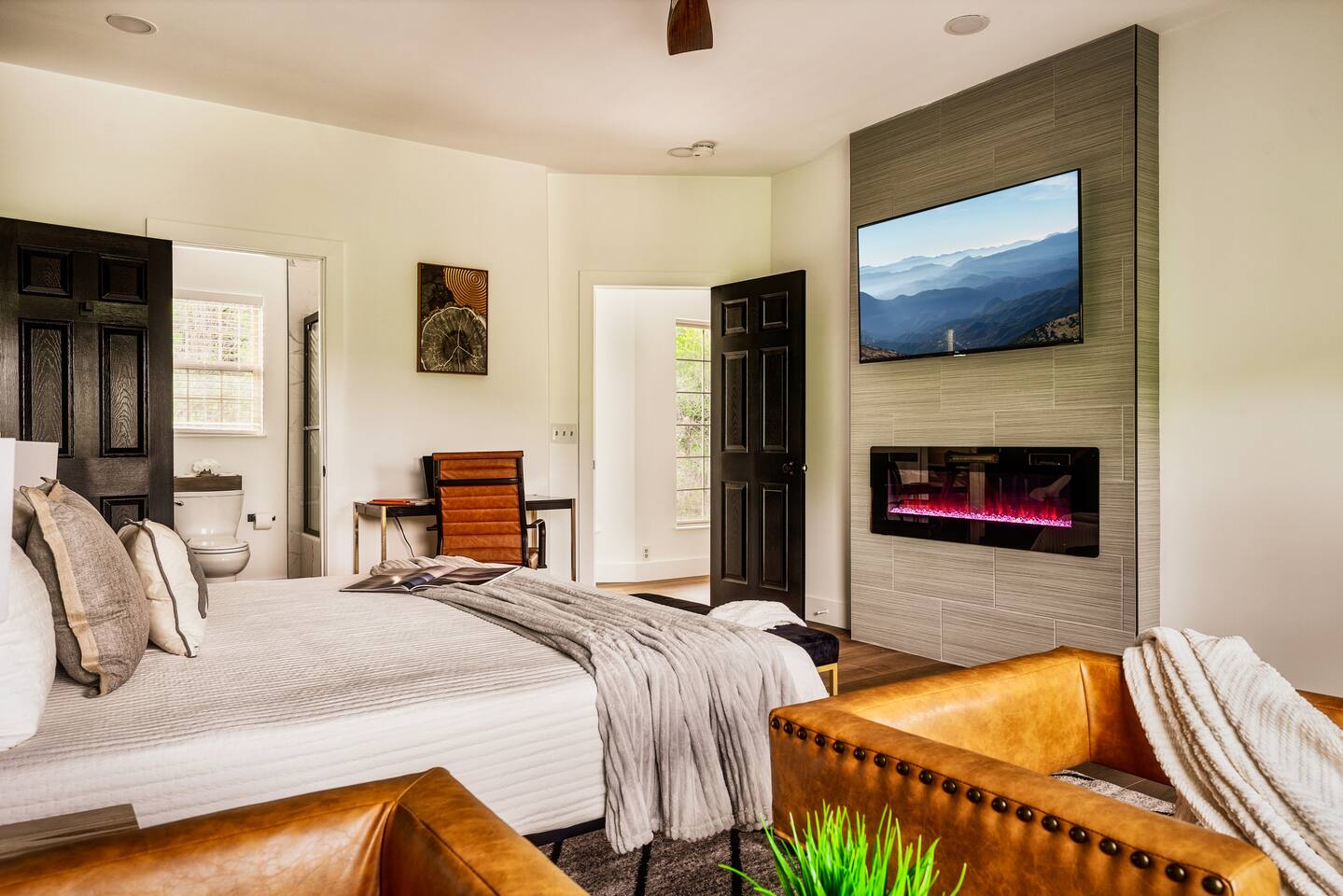 ✹ Unbeatable Breathtaking Views: Three private decks offer stunning mountain vistas, ideal for morning coffee, sunset cocktails, or stargazing by the firepit. ✹ Elegant Living Spaces: The open-concept living area features a striking 3-sided electric fireplace and a 65” smart TV, giving you a cozy, stylish place to unwind. ✹ Culinary Haven: A gourmet kitchen awaits with top-of-the-line appliances, an espresso machine, and a K-brew coffee maker. Enjoy your meals around a spacious dining table for 8, or dine al fresco with the mountains as your backdrop. ✹ Luxurious Bedroom Retreats: Three private bedroom sanctuaries, including a master suite with a king bed, freestanding tub, and private deck access, promise ultimate relaxation. ✹ Perfect Work-Life Balance: The second bedroom includes a work-ready desk, perfect for remote work without sacrificing comfort. ✹ Entertainment Galore: Challenge friends and family in the expansive game room with a pool table, multicade, and Golden Tee golf – plus a fun rock climbing wall for the kids. ✹ Hot Tub Bliss: Soak in a premium hot tub while gazing at the mountains. It’s the ultimate way to unwind after a day of exploring. ✹ Firepit Gatherings: Cozy up around the firepit on a cool mountain night, sharing stories under the stars. Welcome to your luxury mountain retreat in the heart of the Smokies, where modern comfort meets breathtaking natural beauty. As you step into the open-concept living area, you'll be captivated by the stunning 3-sided electric fireplace that serves as the room's centerpiece. Sink into premium leather couches or designer accent chairs while enjoying your favorite entertainment on the impressive 65" smart TV. Just beyond, the main level deck offers your first glimpse of the magnificent mountain panoramas that surround the property. Your culinary adventures begin in our fully equipped kitchen, where sleek stainless steel appliances await your creativity. Start your mornings with the perfect brew from our espresso machine or K-brew coffee maker, then gather with loved ones around the elegant 8-person dining table. For an unforgettable dining experience, step onto the deck where al fresco meals come with a side of stunning mountain views. Each of our three thoughtfully designed bedrooms offers its own private sanctuary. The upper-level primary suite boasts a sumptuous king bed and a luxury ensuite bathroom featuring a free-standing tub, anti-fog mirrors, and private deck access. The second bedroom provides another king bed and a modern workspace perfect for remote work, complete with its own ensuite bathroom. On the lower level, families or groups will appreciate the queen-over-queen bunk bed with a private bath, ensuring comfort and privacy for all guests. Entertainment abounds in our expansive game room, a space designed for creating lasting memories. Challenge your companions to a game of pool, explore over 3,000 classic games on the multicade machine, or perfect your swing with Golden Tee golf. For our younger guests, an exciting rock climbing wall in the bunk room provides additional adventure under adult supervision. The outdoor living spaces truly set our chalet apart, with three private decks showcasing the majesty of the Smokies. Soak in the premium hot tub while drinking in mountain vistas, gather around the outdoor firepit dining table for memorable meals under the stars, or simply unwind in the cozy conversation area by the firepit. We've thought of everything to make your family comfortable, from a Pack 'n Play and highchair to children's dinnerware and essential toiletries. For eco-conscious guests, we're pleased to offer a Level 2 electric vehicle charging station, allowing you to power up your electric vehicle during your stay. With free parking for three vehicles and a perfect location near downtown Gatlinburg, you'll have easy access to local attractions, restaurants, shopping, and mountain activities. Your stay includes complimentary access to resort-style amenities, including three community clubhouses (available from Memorial Day to Labor Day) with amenities including outdoor pools, pickle ball court, tennis court, and a fitness center. Experience the perfect blend of luxury and mountain charm in our welcoming chalet. Whether you're seeking adventure or relaxation, this exceptional retreat provides an unforgettable backdrop for your Gatlinburg getaway. Book now to create lasting memories in the heart of the Smokies!