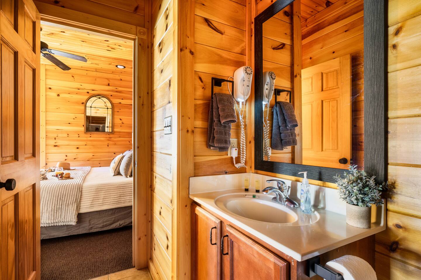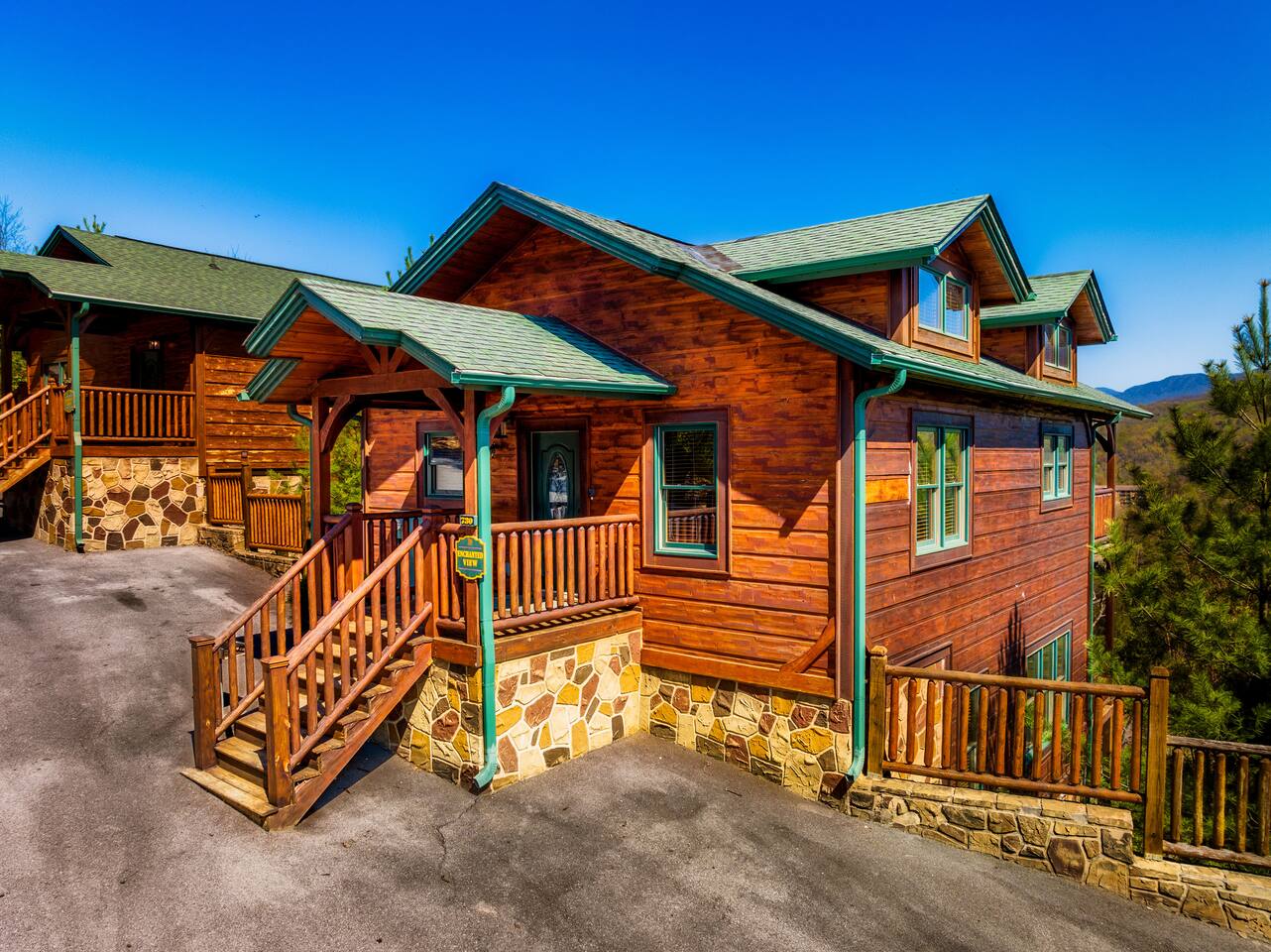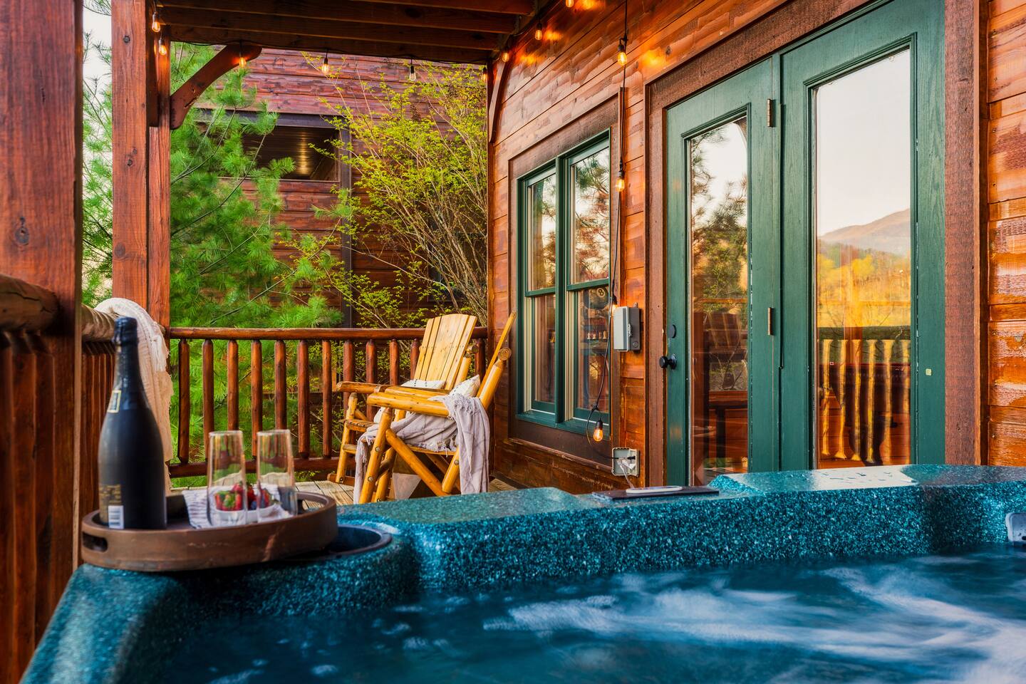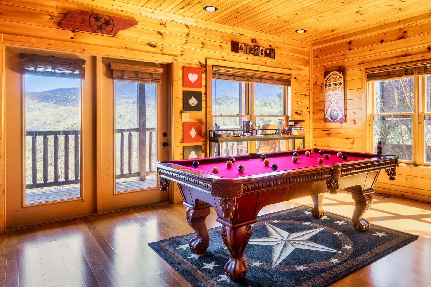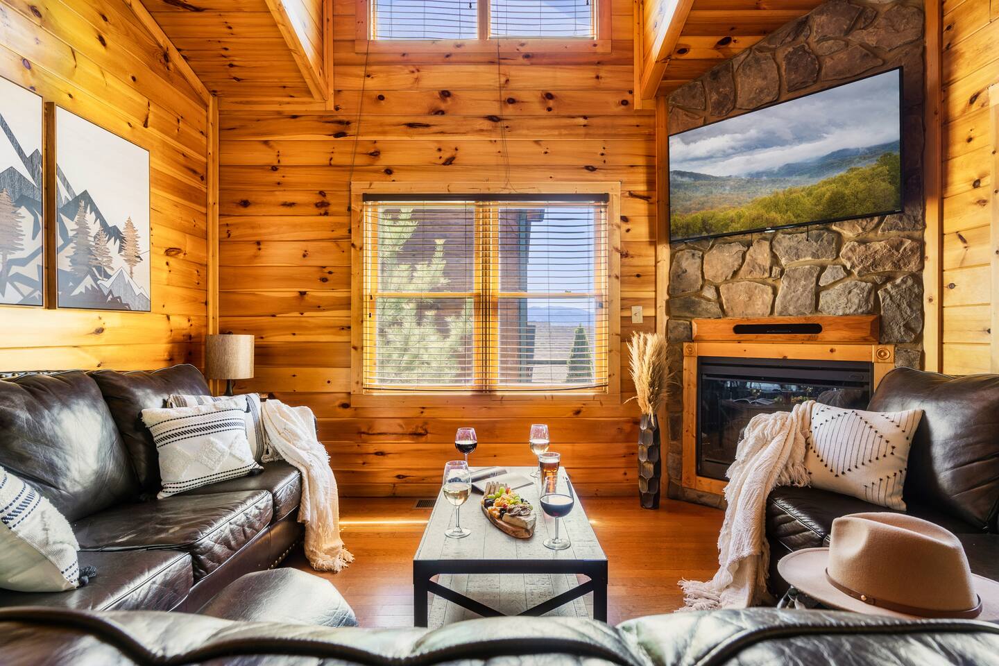 Charming cabin with breathtaking views of Mt. Leconte at Gatlinburg Falls Parkview Resort. Ideal for honeymoons, anniversaries, or relaxing retreats. Enjoy a hot tub, pool table, multicade, air hockey, and high-speed WiFi in a picturesque natural setting. The cozy cabin has two king bedrooms with private bathrooms and TVs. Just 1 mile from downtown Gatlinburg, perfect for creating unforgettable memories in the Smoky Mountain. The clubhouse pool is open through Labor Day. Dive into summer fun!