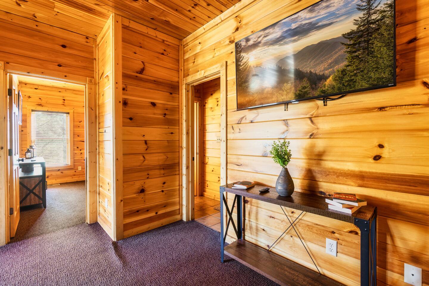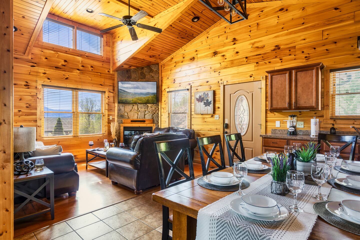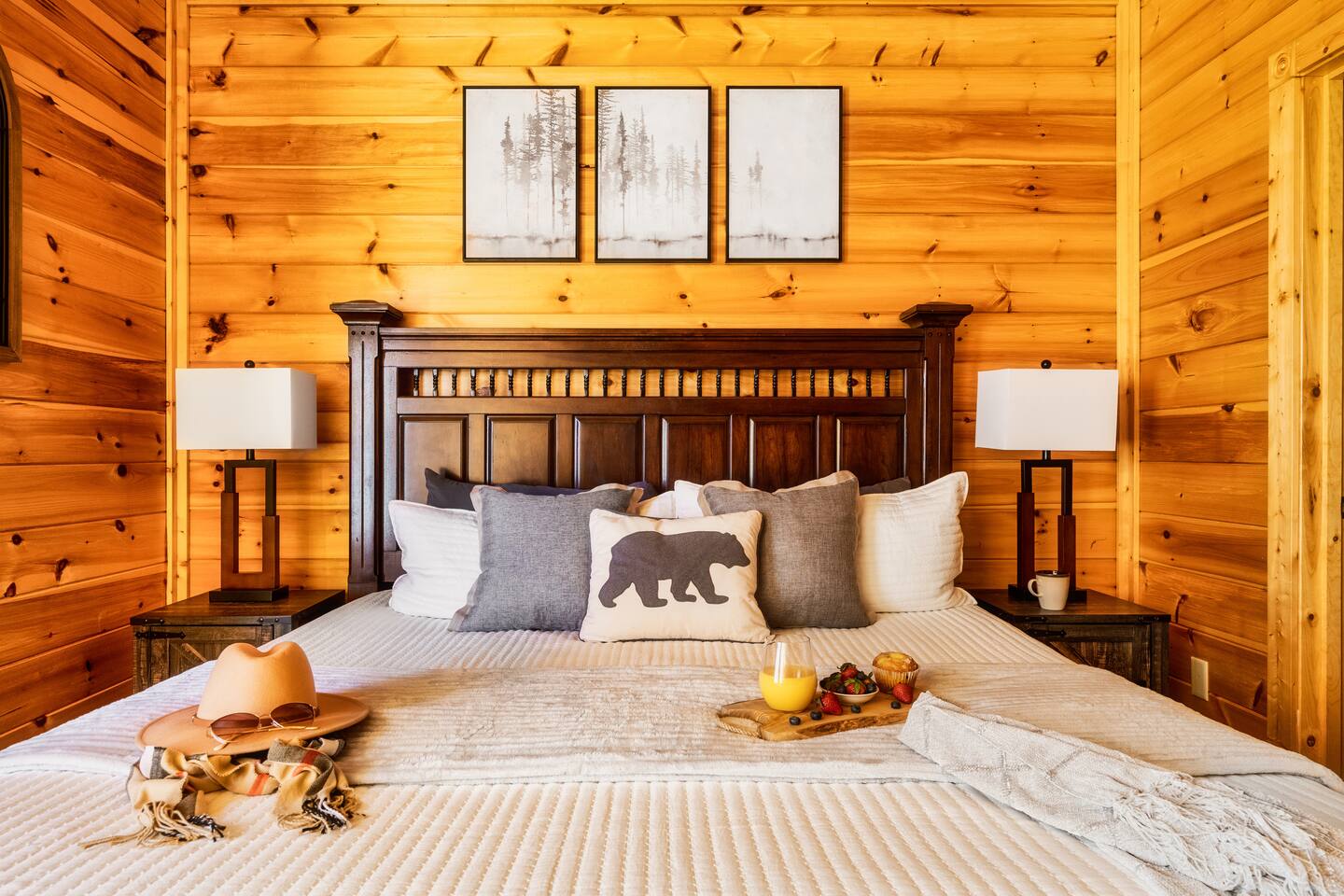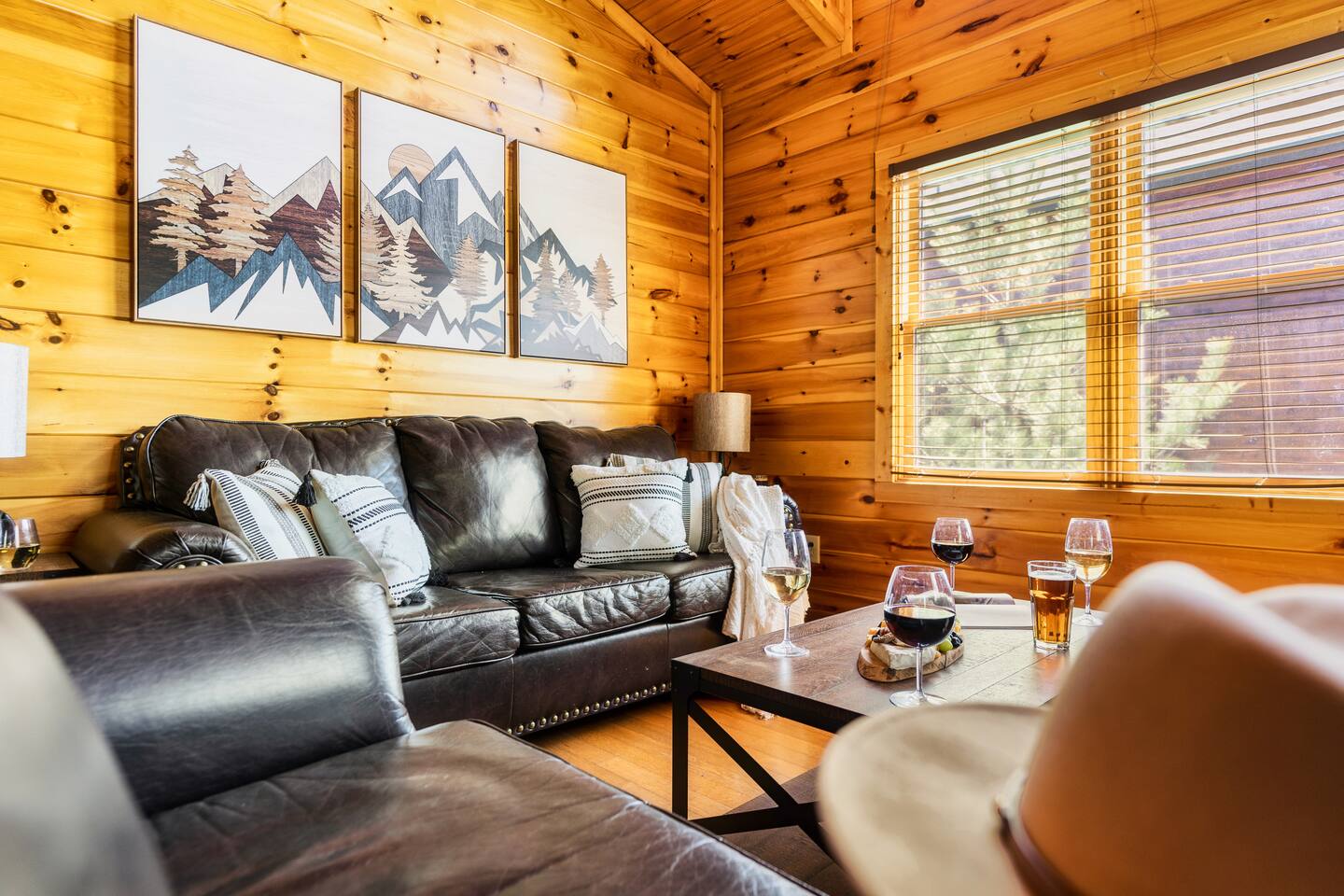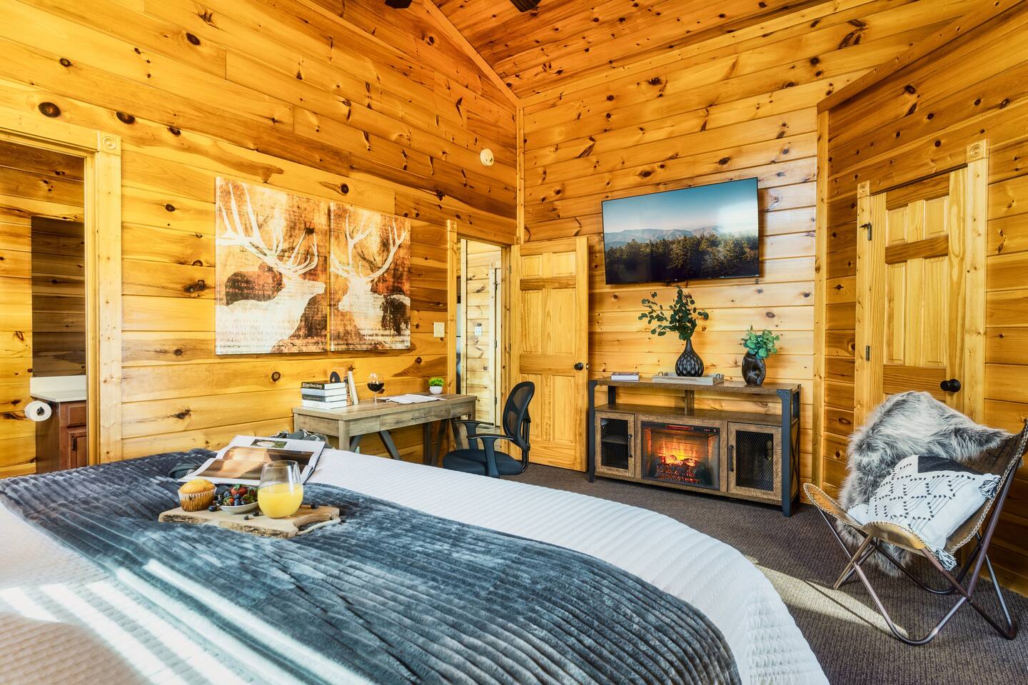 Charming cabin with breathtaking views of Mt. Leconte at Gatlinburg Falls Parkview Resort. Ideal for honeymoons, anniversaries, or relaxing retreats. Enjoy a hot tub, pool table, multicade, air hockey, and high-speed WiFi in a picturesque natural setting. The cozy cabin has two king bedrooms with private bathrooms and TVs. Just 1 mile from downtown Gatlinburg, perfect for creating unforgettable memories in the Smoky Mountain. The clubhouse pool is open through Labor Day. Dive into summer fun!