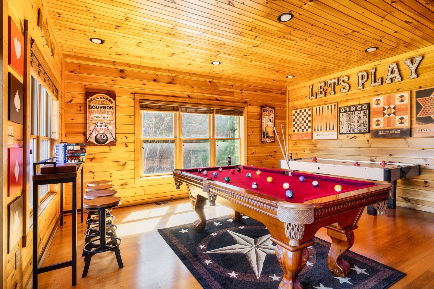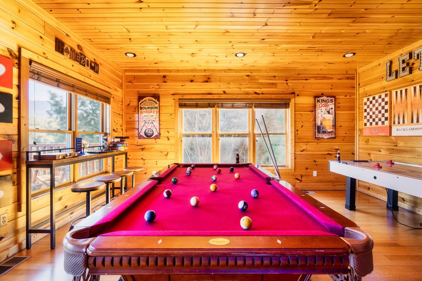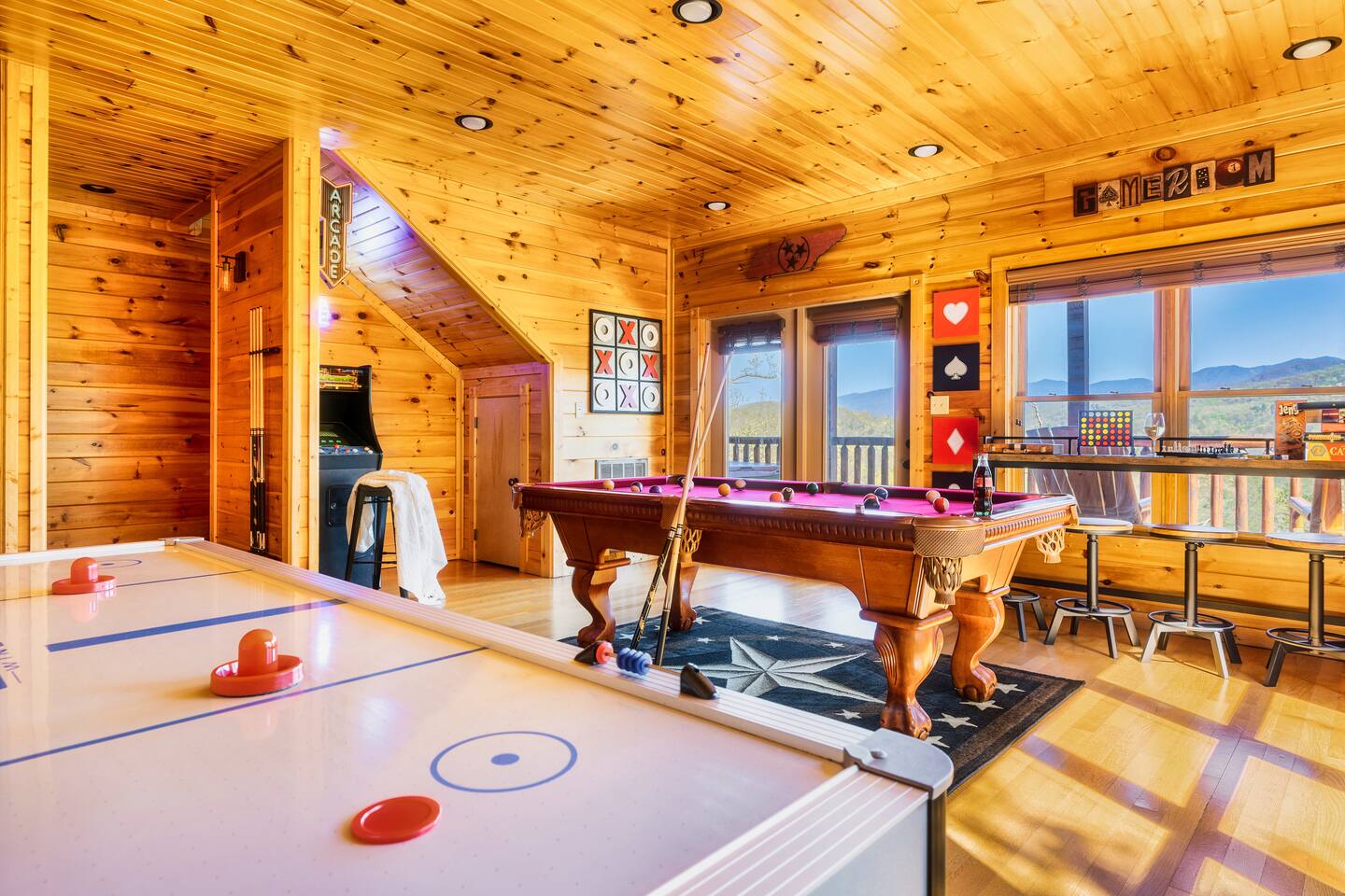 ✹ Clubhouse Pool Access | Now open for the season until Labor Day! ✹ Spectacular mountain views of Mount Leconte from the decks. ✹ 1 mile from downtown Gatlinburg, offering easy access to attractions. ✹ Two master suites with king beds and private full bathrooms. ✹ Bright living room with large windows for plenty of natural light. ✹ Outdoor hot tub for 4 people on the lower deck with rocking chairs. ✹ Game room featuring a multicade, pool table, and air hockey. ✹ High-speed Wi-Fi and HD TV with multiple channels in every room. ✹ Workspace in the main-level master bedroom, ideal for remote work. ✹ Family-friendly amenities, including a pack 'n play, highchair, and kid utensils. ✹ Easy winter access with well-maintained resort roads, no need for 4-wheel drive. Discover the ultimate year-round getaway in the heart of the Smoky Mountains at this charming two-story cabin, just 1 mile from the Gatlinburg strip. Perfectly situated near the entrance of the Great Smoky Mountains National Park, this cabin offers breathtaking views of Mount Leconte, making it an ideal retreat for every season. Whether you’re visiting in the vibrant fall, cozy winter, blooming spring, or lively summer, this cabin provides the perfect base for couples, families, or groups of friends. It comfortably sleeps 4 but can accommodate up to 8 guests, allowing you to fully experience the beauty and adventure of the Smokies. The bright and spacious living room, with its large windows, invites you to unwind while soaking in the stunning mountain scenery. After a day of exploring the park’s trails, rivers, and wildlife, retreat to the main-level deck, where you can relax on the patio furniture or in a rocking chair while grilling your favorite meals on the electric barbecue. When the temperature cools, head to the lower deck to relax in the four-person hot tub, surrounded by peaceful mountain views. Inside, the cabin boasts two luxurious master suites, both with king-sized beds and private full bathrooms. The fully stocked kitchen and dining area make preparing meals easy and enjoyable, while the cozy fireplace in the living room sets the perfect mood for cool mountain nights. For indoor fun, the game room is equipped with a multicade, pool table, and air hockey, offering endless entertainment for all ages. High-speed Wi-Fi and HD TVs in every room ensure you stay connected, and for those working remotely, there’s a dedicated workspace in the master suite. Families are especially welcome, with thoughtful amenities including a pack 'n play, highchair, baby bath, and kid-friendly utensils. All linens, towels, and kitchen essentials are provided—just bring your groceries to settle in. During the holiday season, the cabin is beautifully decorated from mid-November to mid-January, creating a festive atmosphere for Christmas and New Year’s celebrations. In the summer, guests can enjoy the resort’s outdoor pool, open from Memorial Day to Labor Day, along with a fitness center. The cabin is easily accessible in all seasons, with well-maintained, wide paved roads that ensure safe travel even in winter, without the need for a four-wheel drive. Located just minutes from downtown Gatlinburg’s top attractions—including Anakeesta, Ober Gatlinburg, and the Sky Bridge—you’re never far from adventure. Whether you want to hike the scenic trails of the Smoky Mountains, take in the fall foliage, ski in winter, or relax by the pool in summer, this cabin is the perfect place to make unforgettable memories. Pets are welcome with pre-approval and a $95 fee per pet per stay. Early check-in and late check-out are subject to availability upon request for an additional fee of $50 per hour. Whether you're seeking a peaceful retreat or an action-packed holiday, this cabin offers comfort, convenience, and the best of the Smoky Mountains in every season. Book now to start planning your dream getaway!