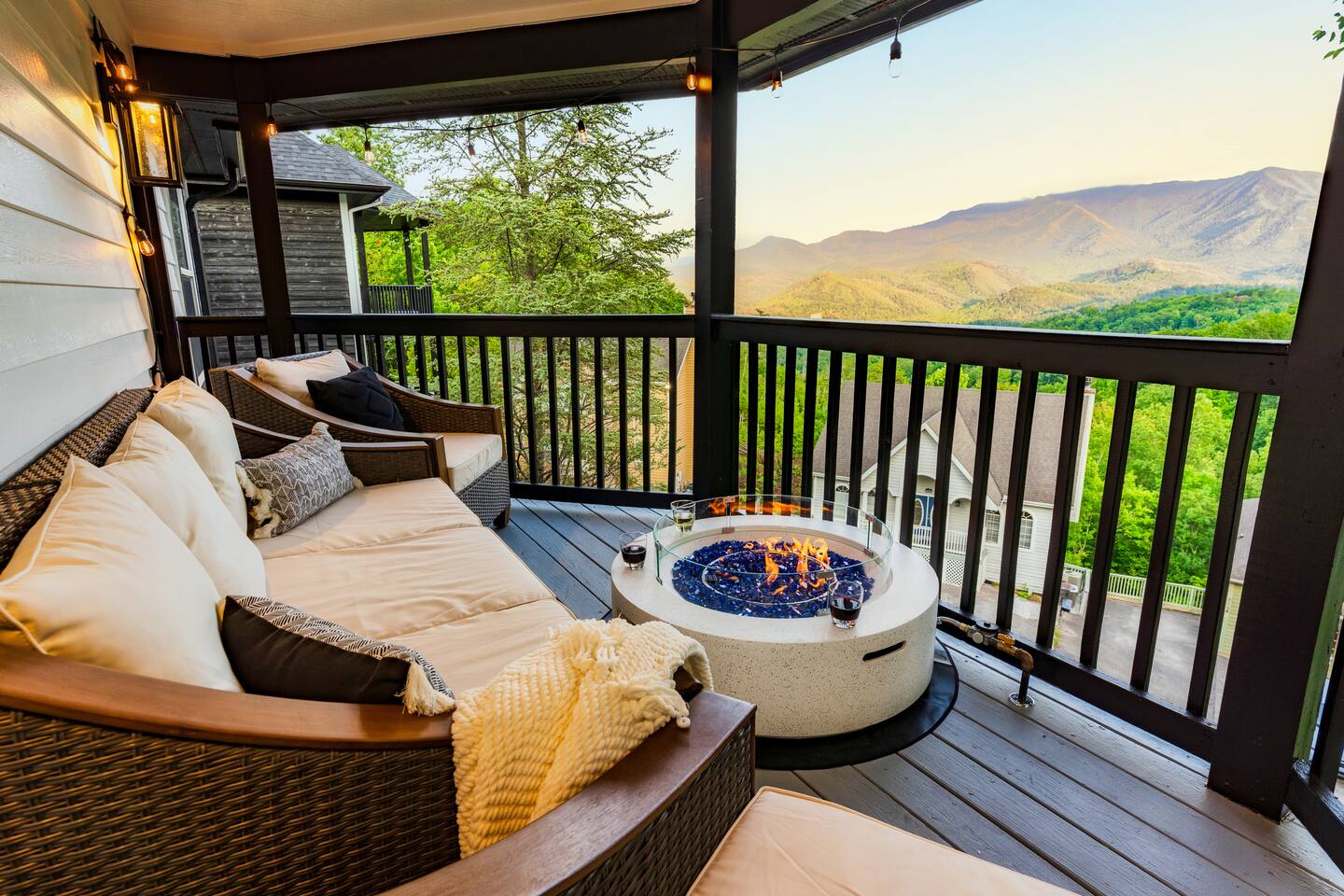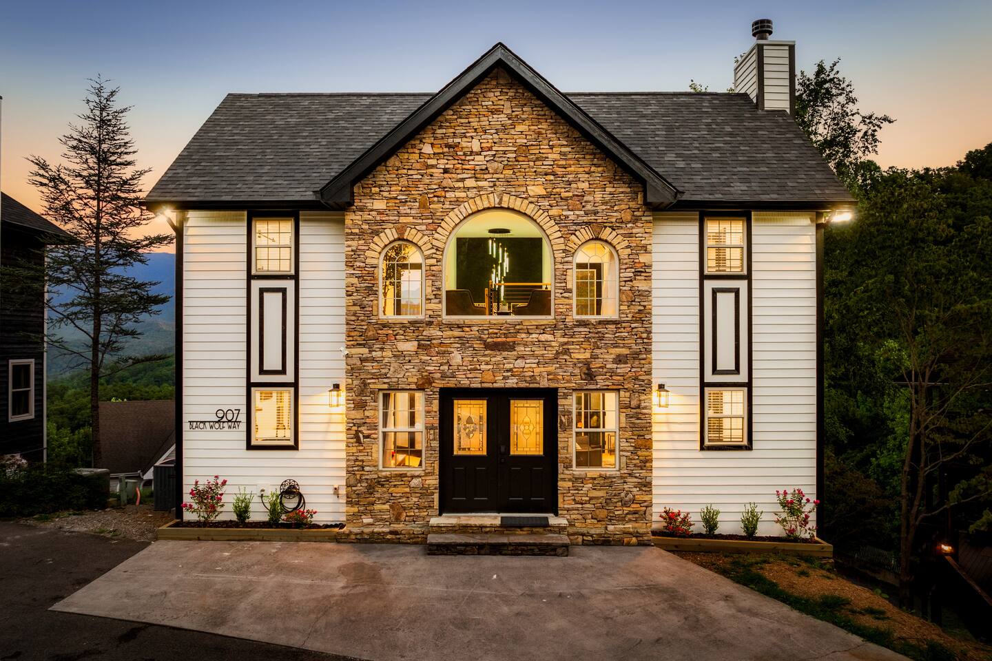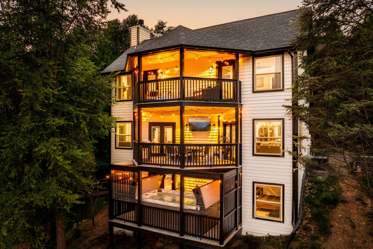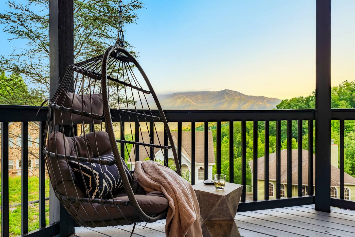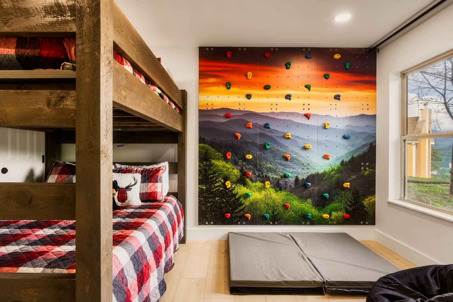 ✹ Stunning Open-Concept Living Area: Features a unique 3-sided electric fireplace, plush leather sofas, and a 65” Smart TV for cozy movie nights. ✹ Gourmet Kitchen & Coffee Station: Fully equipped with stainless steel appliances, stylish pendant lighting, and an espresso machine, K-brew maker, and French press. ✹ Elegant Indoor & Outdoor Dining: Dining table for 8 and a main deck firepit dining table with a Smart TV for dining under the stars. ✹ Luxurious Primary Suite: King bed, custom lighting, electric fireplace, 55” Smart TV, and spa-like ensuite with oversized walk-in shower. ✹ Second Master Suite: King bed, electric fireplace, 55” Smart TV, and ensuite bathroom with a soaking tub for relaxation. ✹ Family-Friendly Bunk Room: Queen-over-queen bunk bed, private bathroom, and fun rock climbing wall for kids under supervision. ✹ Game Room Fun: Pool table, multicade machine, Golden Tee arcade, board games, and 65” Smart TV for endless entertainment. ✹ Three-Level Deck Experience: Lower deck swim spa, main deck firepit dining & egg chair swing, and upper deck with cozy firepit seating. ✹ Private Swim Spa: Exclusive outdoor swim spa on the lower deck, perfect for relaxation while enjoying mountain views. ✹ Prime Location: Just 2 miles from Ober Gatlinburg, perfect for winter sports. Step into the main level, where an impressive open-concept living space welcomes you with its modern three-sided electric fireplace, leather sofas, and designer accent chairs. The 65" Smart TV and designer accent chairs create the perfect setting for cozy movie nights. The gourmet kitchen shines with stainless steel appliances and a contemporary peninsular seating area adorned with stylish pendant lighting. Coffee enthusiasts will appreciate our complete station featuring an espresso machine, K-brew maker, and French press. The elegant dining table seats 8, while the main deck offers an exceptional outdoor dining experience with its firepit table and Smart TV – imagine watching your favorite sports match or show while dining under the mountain sky! The sleeping arrangements are thoughtfully designed across three luxurious bedrooms. The upper-level primary suite features a sumptuous king bed with custom lighting and thoughtfully placed outlets, an electric fireplace for ambiance, a 55" Smart TV, and a spa-like ensuite bathroom with an oversized walk-in shower. The second master suite mirrors this luxury with its own king bed, electric fireplace, 55" Smart TV, and an ensuite featuring a relaxing soaking tub. On the lower level, families will love the third bedroom with its queen-over-queen bunk bed, private bathroom, and a fun rock climbing wall for the kids (under adult supervision, of course). All bathrooms boast modern floating vanities, anti-fog mirrors, and premium toiletries. Entertainment abounds in our professionally equipped game room, featuring a pool table, multicade machine with over 60 classic games, and Golden Tee arcade. A comfortable leather sofa and bar-style seating area create the perfect spot for spectators or game nights, complete with board games and a 65" Smart TV. For outdoor entertainment, enjoy cornhole in the driveway or relax in our three-level deck system. Each deck offers a unique experience: unwind in the private swim spa on the lower deck, enjoy meals at the firepit dining table on the main deck, or gather around the cozy fire pit seating on the upper deck. The egg chair swing provides the perfect perch for taking in the magnificent mountain views, whether you're savoring your morning coffee at sunrise or stargazing in the evening. Families will find everything they need for a comfortable stay, including a pack 'n play, highchair, baby bathtub, and kid-friendly dinnerware. Unwind with exclusive access to three distinct clubhouses, each with its own inviting pool for you to enjoy from Memorial Day through Labor Day. Stay active with a fitness center, challenge yourself on the tennis court, or have fun on two pickleball courts—all designed to make your stay as relaxing or invigorating as you like. The chalet's prime location on Ski Mountain, just 2 miles from Ober Gatlinburg, makes it the perfect winter sports base camp. From mid-November to mid-January, the chalet transforms into a magical holiday retreat with festive decorations throughout. Modern conveniences include free parking for three vehicles and an exclusive EV charging station for our guests. Your perfect mountain getaway awaits with all the essentials provided – just bring your groceries and your sense of adventure! Whether you're seeking a romantic retreat, family vacation, or group gathering, our chalet offers the ideal setting for creating lasting memories in the heart of the Smoky Mountains. *Experience the height of mountain luxury – book your stay today!*
