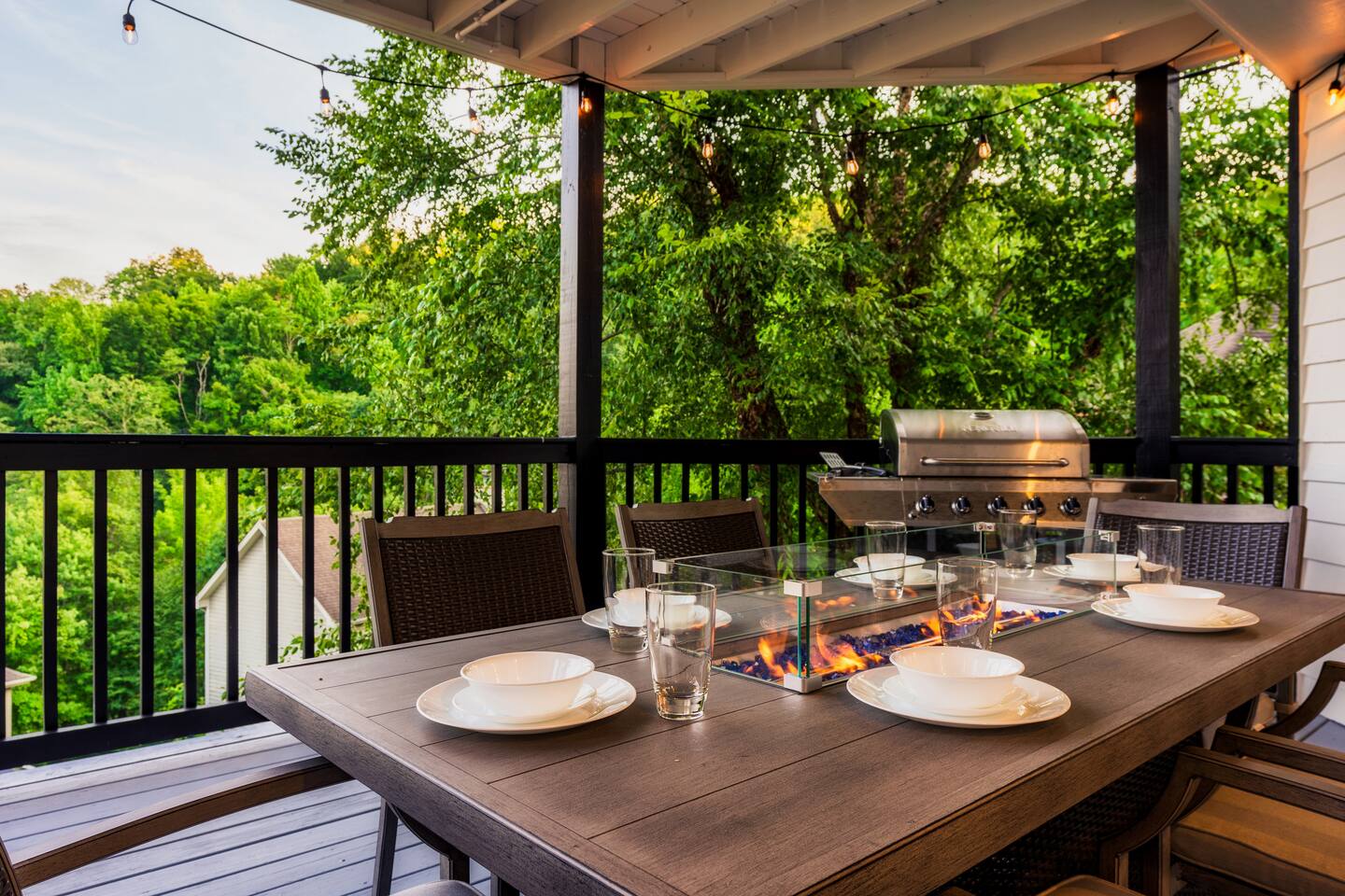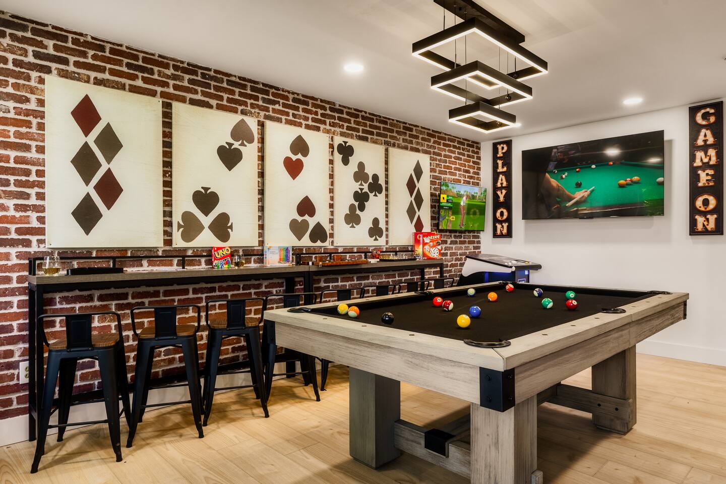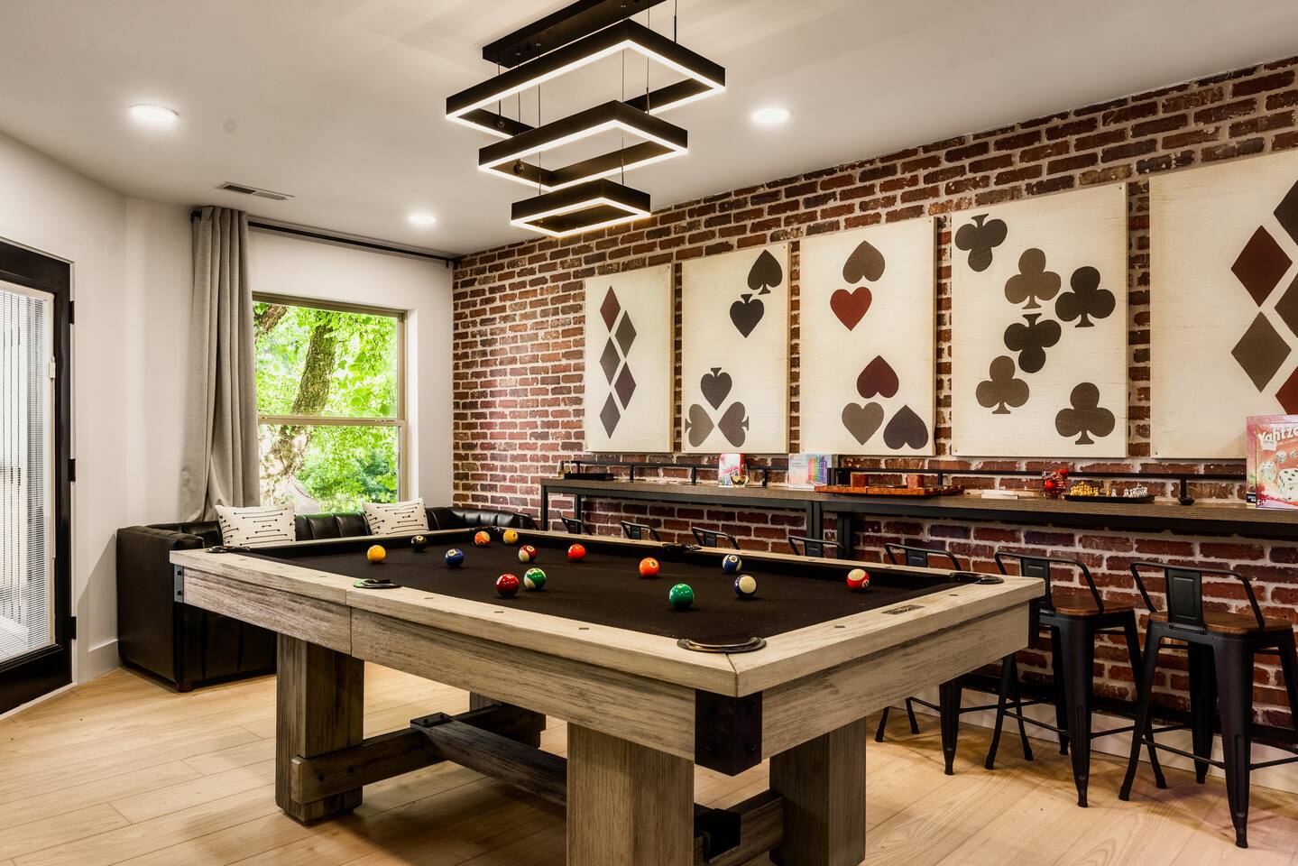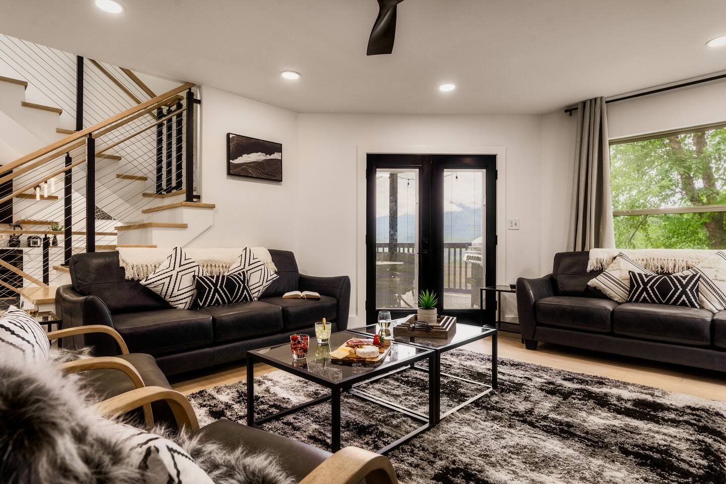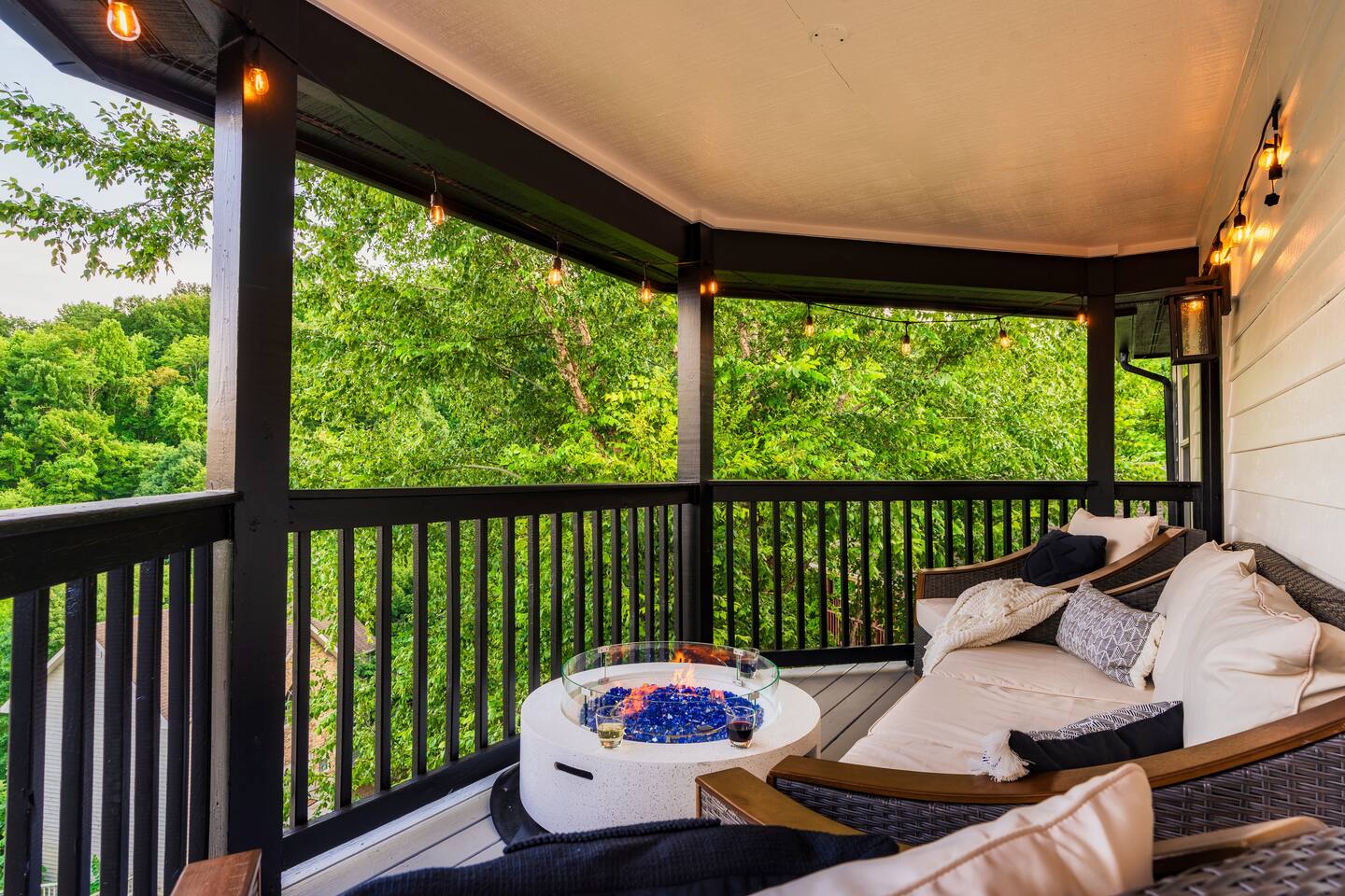 ✹ Stunning Open-Concept Living Area: Features a unique 3-sided electric fireplace, plush leather sofas, and a 65” Smart TV for cozy movie nights. ✹ Gourmet Kitchen & Coffee Station: Fully equipped with stainless steel appliances, stylish pendant lighting, and an espresso machine, K-brew maker, and French press. ✹ Elegant Indoor & Outdoor Dining: Dining table for 8 and a main deck firepit dining table with a Smart TV for dining under the stars. ✹ Luxurious Primary Suite: King bed, custom lighting, electric fireplace, 55” Smart TV, and spa-like ensuite with oversized walk-in shower. ✹ Second Master Suite: King bed, electric fireplace, 55” Smart TV, and ensuite bathroom with a soaking tub for relaxation. ✹ Family-Friendly Bunk Room: Queen-over-queen bunk bed, private bathroom, and fun rock climbing wall for kids under supervision. ✹ Game Room Fun: Pool table, multicade machine, Golden Tee arcade, board games, and 65” Smart TV for endless entertainment. ✹ Three-Level Deck Experience: Lower deck swim spa, main deck firepit dining & egg chair swing, and upper deck with cozy firepit seating. ✹ Private Swim Spa: Exclusive outdoor swim spa on the lower deck, perfect for relaxation while enjoying mountain views. ✹ Prime Location: Just 2 miles from Ober Gatlinburg, perfect for winter sports. Step into the main level, where an impressive open-concept living space welcomes you with its modern three-sided electric fireplace, leather sofas, and designer accent chairs. The 65" Smart TV and designer accent chairs create the perfect setting for cozy movie nights. The gourmet kitchen shines with stainless steel appliances and a contemporary peninsular seating area adorned with stylish pendant lighting. Coffee enthusiasts will appreciate our complete station featuring an espresso machine, K-brew maker, and French press. The elegant dining table seats 8, while the main deck offers an exceptional outdoor dining experience with its firepit table and Smart TV – imagine watching your favorite sports match or show while dining under the mountain sky! The sleeping arrangements are thoughtfully designed across three luxurious bedrooms. The upper-level primary suite features a sumptuous king bed with custom lighting and thoughtfully placed outlets, an electric fireplace for ambiance, a 55" Smart TV, and a spa-like ensuite bathroom with an oversized walk-in shower. The second master suite mirrors this luxury with its own king bed, electric fireplace, 55" Smart TV, and an ensuite featuring a relaxing soaking tub. On the lower level, families will love the third bedroom with its queen-over-queen bunk bed, private bathroom, and a fun rock climbing wall for the kids (under adult supervision, of course). All bathrooms boast modern floating vanities, anti-fog mirrors, and premium toiletries. Entertainment abounds in our professionally equipped game room, featuring a pool table, multicade machine with over 60 classic games, and Golden Tee arcade. A comfortable leather sofa and bar-style seating area create the perfect spot for spectators or game nights, complete with board games and a 65" Smart TV. For outdoor entertainment, enjoy cornhole in the driveway or relax in our three-level deck system. Each deck offers a unique experience: unwind in the private swim spa on the lower deck, enjoy meals at the firepit dining table on the main deck, or gather around the cozy fire pit seating on the upper deck. The egg chair swing provides the perfect perch for taking in the magnificent mountain views, whether you're savoring your morning coffee at sunrise or stargazing in the evening. Families will find everything they need for a comfortable stay, including a pack 'n play, highchair, baby bathtub, and kid-friendly dinnerware. Unwind with exclusive access to three distinct clubhouses, each with its own inviting pool for you to enjoy from Memorial Day through Labor Day. Stay active with a fitness center, challenge yourself on the tennis court, or have fun on two pickleball courts—all designed to make your stay as relaxing or invigorating as you like. The chalet's prime location on Ski Mountain, just 2 miles from Ober Gatlinburg, makes it the perfect winter sports base camp. From mid-November to mid-January, the chalet transforms into a magical holiday retreat with festive decorations throughout. Modern conveniences include free parking for three vehicles and an exclusive EV charging station for our guests. Your perfect mountain getaway awaits with all the essentials provided – just bring your groceries and your sense of adventure! Whether you're seeking a romantic retreat, family vacation, or group gathering, our chalet offers the ideal setting for creating lasting memories in the heart of the Smoky Mountains. *Experience the height of mountain luxury – book your stay today!*