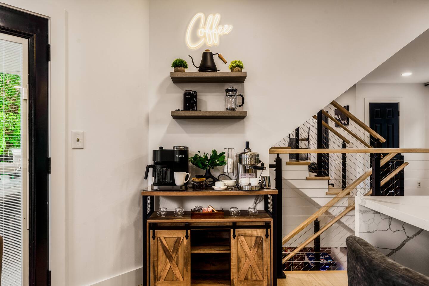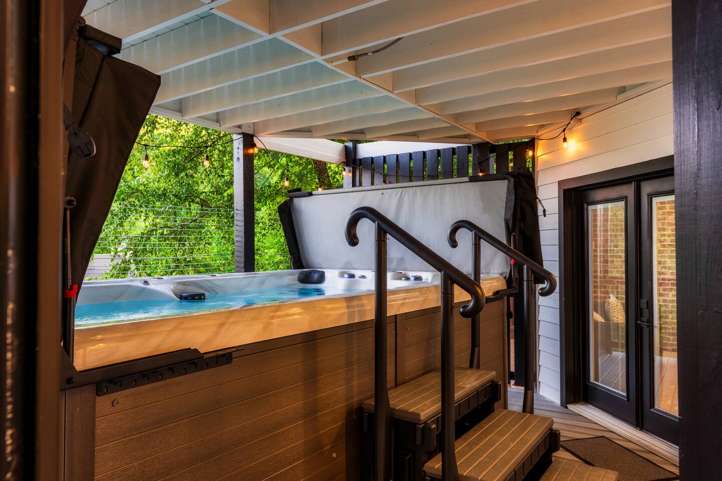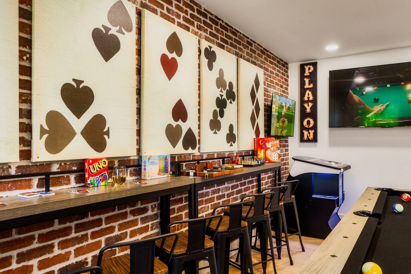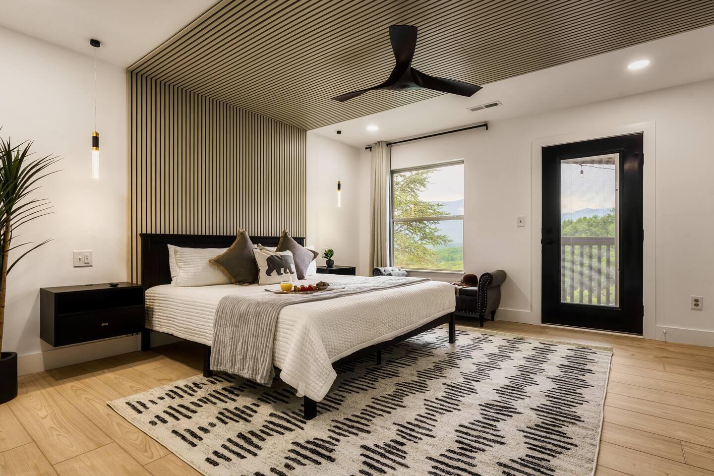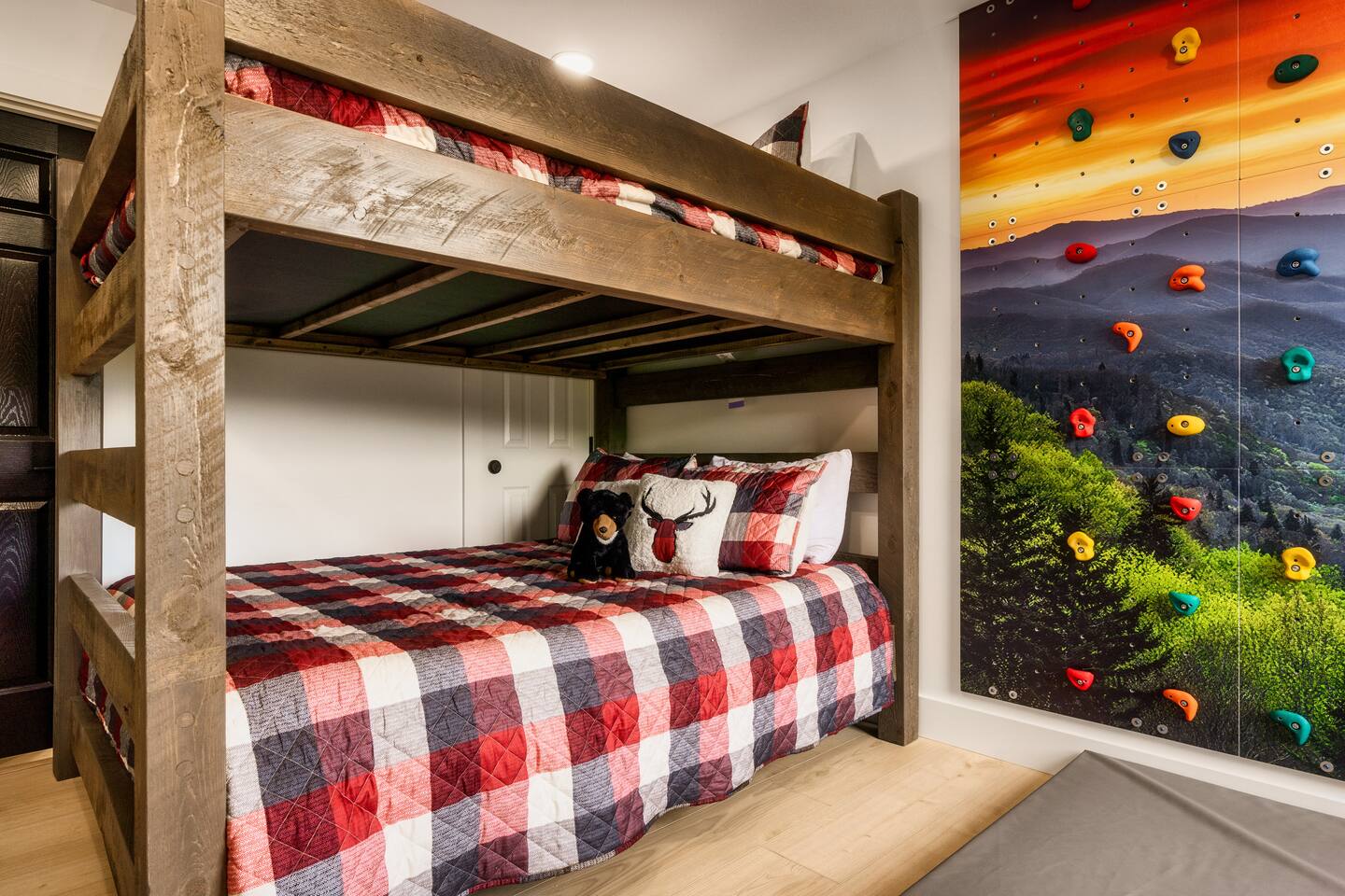 ✹ Stunning Open-Concept Living Area: Features a unique 3-sided electric fireplace, plush leather sofas, and a 65” Smart TV for cozy movie nights. ✹ Gourmet Kitchen & Coffee Station: Fully equipped with stainless steel appliances, stylish pendant lighting, and an espresso machine, K-brew maker, and French press. ✹ Elegant Indoor & Outdoor Dining: Dining table for 8 and a main deck firepit dining table with a Smart TV for dining under the stars. ✹ Luxurious Primary Suite: King bed, custom lighting, electric fireplace, 55” Smart TV, and spa-like ensuite with oversized walk-in shower. ✹ Second Master Suite: King bed, electric fireplace, 55” Smart TV, and ensuite bathroom with a soaking tub for relaxation. ✹ Family-Friendly Bunk Room: Queen-over-queen bunk bed, private bathroom, and fun rock climbing wall for kids under supervision. ✹ Game Room Fun: Pool table, multicade machine, Golden Tee arcade, board games, and 65” Smart TV for endless entertainment. ✹ Three-Level Deck Experience: Lower deck swim spa, main deck firepit dining & egg chair swing, and upper deck with cozy firepit seating. ✹ Private Swim Spa: Exclusive outdoor swim spa on the lower deck, perfect for relaxation while enjoying mountain views. ✹ Prime Location: Just 2 miles from Ober Gatlinburg, perfect for winter sports. Step into the main level, where an impressive open-concept living space welcomes you with its modern three-sided electric fireplace, leather sofas, and designer accent chairs. The 65" Smart TV and designer accent chairs create the perfect setting for cozy movie nights. The gourmet kitchen shines with stainless steel appliances and a contemporary peninsular seating area adorned with stylish pendant lighting. Coffee enthusiasts will appreciate our complete station featuring an espresso machine, K-brew maker, and French press. The elegant dining table seats 8, while the main deck offers an exceptional outdoor dining experience with its firepit table and Smart TV – imagine watching your favorite sports match or show while dining under the mountain sky! The sleeping arrangements are thoughtfully designed across three luxurious bedrooms. The upper-level primary suite features a sumptuous king bed with custom lighting and thoughtfully placed outlets, an electric fireplace for ambiance, a 55" Smart TV, and a spa-like ensuite bathroom with an oversized walk-in shower. The second master suite mirrors this luxury with its own king bed, electric fireplace, 55" Smart TV, and an ensuite featuring a relaxing soaking tub. On the lower level, families will love the third bedroom with its queen-over-queen bunk bed, private bathroom, and a fun rock climbing wall for the kids (under adult supervision, of course). All bathrooms boast modern floating vanities, anti-fog mirrors, and premium toiletries. Entertainment abounds in our professionally equipped game room, featuring a pool table, multicade machine with over 60 classic games, and Golden Tee arcade. A comfortable leather sofa and bar-style seating area create the perfect spot for spectators or game nights, complete with board games and a 65" Smart TV. For outdoor entertainment, enjoy cornhole in the driveway or relax in our three-level deck system. Each deck offers a unique experience: unwind in the private swim spa on the lower deck, enjoy meals at the firepit dining table on the main deck, or gather around the cozy fire pit seating on the upper deck. The egg chair swing provides the perfect perch for taking in the magnificent mountain views, whether you're savoring your morning coffee at sunrise or stargazing in the evening. Families will find everything they need for a comfortable stay, including a pack 'n play, highchair, baby bathtub, and kid-friendly dinnerware. Unwind with exclusive access to three distinct clubhouses, each with its own inviting pool for you to enjoy from Memorial Day through Labor Day. Stay active with a fitness center, challenge yourself on the tennis court, or have fun on two pickleball courts—all designed to make your stay as relaxing or invigorating as you like. The chalet's prime location on Ski Mountain, just 2 miles from Ober Gatlinburg, makes it the perfect winter sports base camp. From mid-November to mid-January, the chalet transforms into a magical holiday retreat with festive decorations throughout. Modern conveniences include free parking for three vehicles and an exclusive EV charging station for our guests. Your perfect mountain getaway awaits with all the essentials provided – just bring your groceries and your sense of adventure! Whether you're seeking a romantic retreat, family vacation, or group gathering, our chalet offers the ideal setting for creating lasting memories in the heart of the Smoky Mountains. *Experience the height of mountain luxury – book your stay today!*