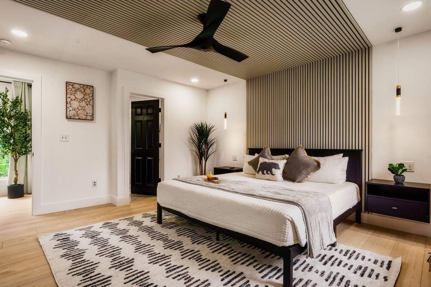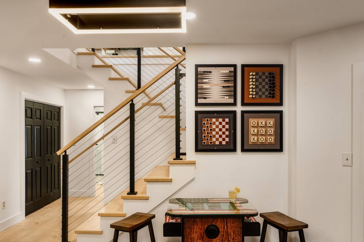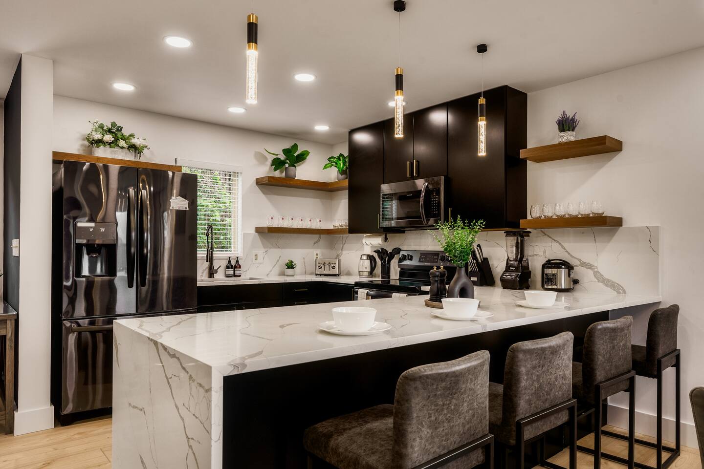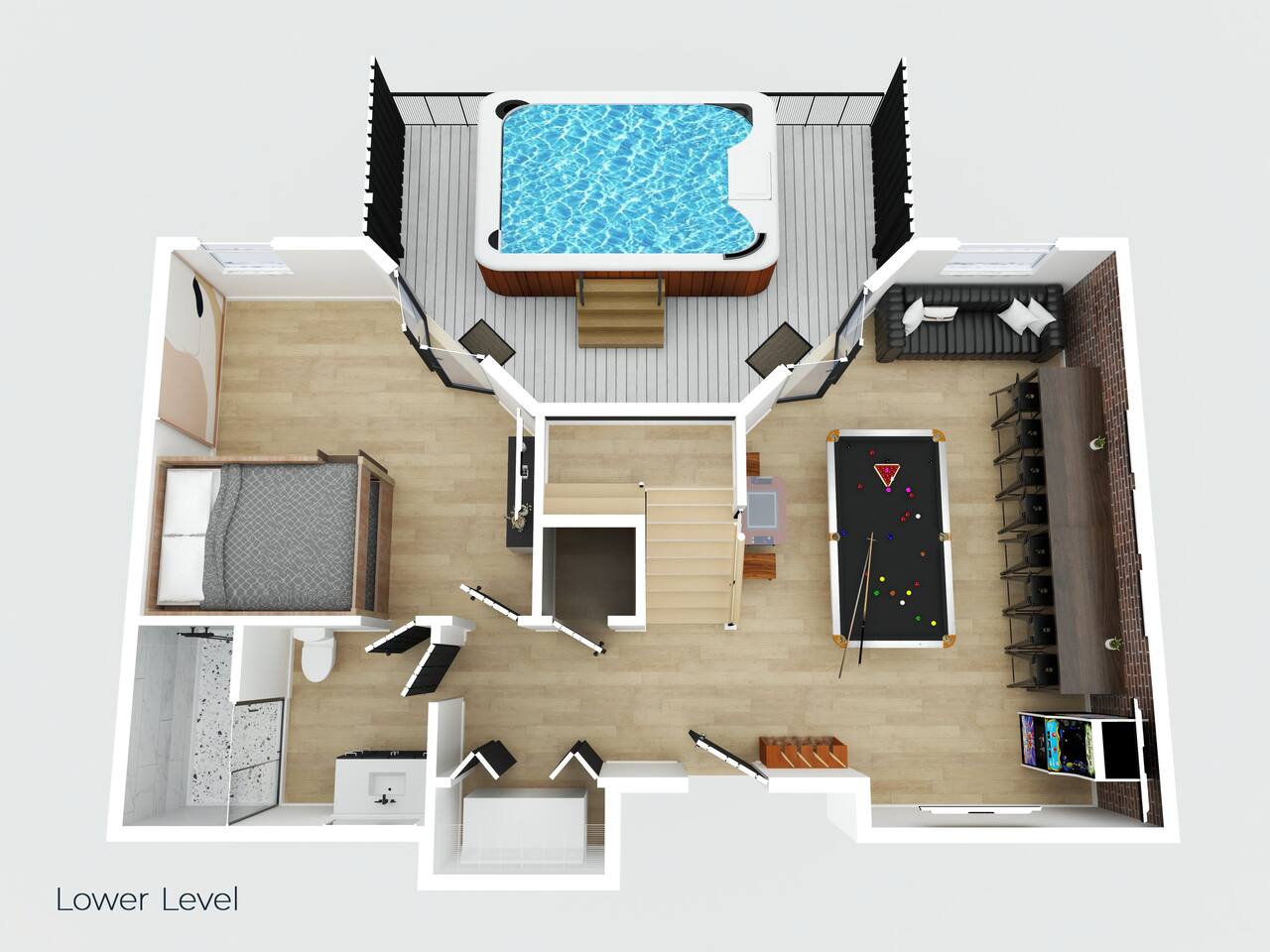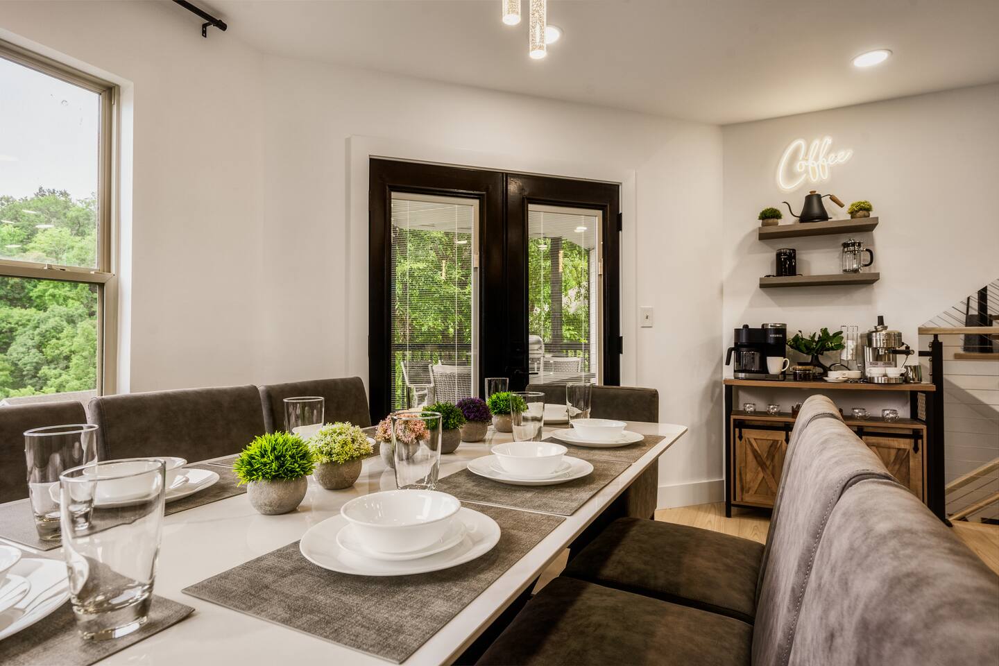 ✹ Stunning Open-Concept Living Area: Features a unique 3-sided electric fireplace, plush leather sofas, and a 65” Smart TV for cozy movie nights. ✹ Gourmet Kitchen & Coffee Station: Fully equipped with stainless steel appliances, stylish pendant lighting, and an espresso machine, K-brew maker, and French press. ✹ Elegant Indoor & Outdoor Dining: Dining table for 8 and a main deck firepit dining table with a Smart TV for dining under the stars. ✹ Luxurious Primary Suite: King bed, custom lighting, electric fireplace, 55” Smart TV, and spa-like ensuite with oversized walk-in shower. ✹ Second Master Suite: King bed, electric fireplace, 55” Smart TV, and ensuite bathroom with a soaking tub for relaxation. ✹ Family-Friendly Bunk Room: Queen-over-queen bunk bed, private bathroom, and fun rock climbing wall for kids under supervision. ✹ Game Room Fun: Pool table, multicade machine, Golden Tee arcade, board games, and 65” Smart TV for endless entertainment. ✹ Three-Level Deck Experience: Lower deck swim spa, main deck firepit dining & egg chair swing, and upper deck with cozy firepit seating. ✹ Private Swim Spa: Exclusive outdoor swim spa on the lower deck, perfect for relaxation while enjoying mountain views. ✹ Prime Location: Just 2 miles from Ober Gatlinburg, perfect for winter sports. Step into the main level, where an impressive open-concept living space welcomes you with its modern three-sided electric fireplace, leather sofas, and designer accent chairs. The 65" Smart TV and designer accent chairs create the perfect setting for cozy movie nights. The gourmet kitchen shines with stainless steel appliances and a contemporary peninsular seating area adorned with stylish pendant lighting. Coffee enthusiasts will appreciate our complete station featuring an espresso machine, K-brew maker, and French press. The elegant dining table seats 8, while the main deck offers an exceptional outdoor dining experience with its firepit table and Smart TV – imagine watching your favorite sports match or show while dining under the mountain sky! The sleeping arrangements are thoughtfully designed across three luxurious bedrooms. The upper-level primary suite features a sumptuous king bed with custom lighting and thoughtfully placed outlets, an electric fireplace for ambiance, a 55" Smart TV, and a spa-like ensuite bathroom with an oversized walk-in shower. The second master suite mirrors this luxury with its own king bed, electric fireplace, 55" Smart TV, and an ensuite featuring a relaxing soaking tub. On the lower level, families will love the third bedroom with its queen-over-queen bunk bed, private bathroom, and a fun rock climbing wall for the kids (under adult supervision, of course). All bathrooms boast modern floating vanities, anti-fog mirrors, and premium toiletries. Entertainment abounds in our professionally equipped game room, featuring a pool table, multicade machine with over 60 classic games, and Golden Tee arcade. A comfortable leather sofa and bar-style seating area create the perfect spot for spectators or game nights, complete with board games and a 65" Smart TV. For outdoor entertainment, enjoy cornhole in the driveway or relax in our three-level deck system. Each deck offers a unique experience: unwind in the private swim spa on the lower deck, enjoy meals at the firepit dining table on the main deck, or gather around the cozy fire pit seating on the upper deck. The egg chair swing provides the perfect perch for taking in the magnificent mountain views, whether you're savoring your morning coffee at sunrise or stargazing in the evening. Families will find everything they need for a comfortable stay, including a pack 'n play, highchair, baby bathtub, and kid-friendly dinnerware. Unwind with exclusive access to three distinct clubhouses, each with its own inviting pool for you to enjoy from Memorial Day through Labor Day. Stay active with a fitness center, challenge yourself on the tennis court, or have fun on two pickleball courts—all designed to make your stay as relaxing or invigorating as you like. The chalet's prime location on Ski Mountain, just 2 miles from Ober Gatlinburg, makes it the perfect winter sports base camp. From mid-November to mid-January, the chalet transforms into a magical holiday retreat with festive decorations throughout. Modern conveniences include free parking for three vehicles and an exclusive EV charging station for our guests. Your perfect mountain getaway awaits with all the essentials provided – just bring your groceries and your sense of adventure! Whether you're seeking a romantic retreat, family vacation, or group gathering, our chalet offers the ideal setting for creating lasting memories in the heart of the Smoky Mountains. *Experience the height of mountain luxury – book your stay today!*