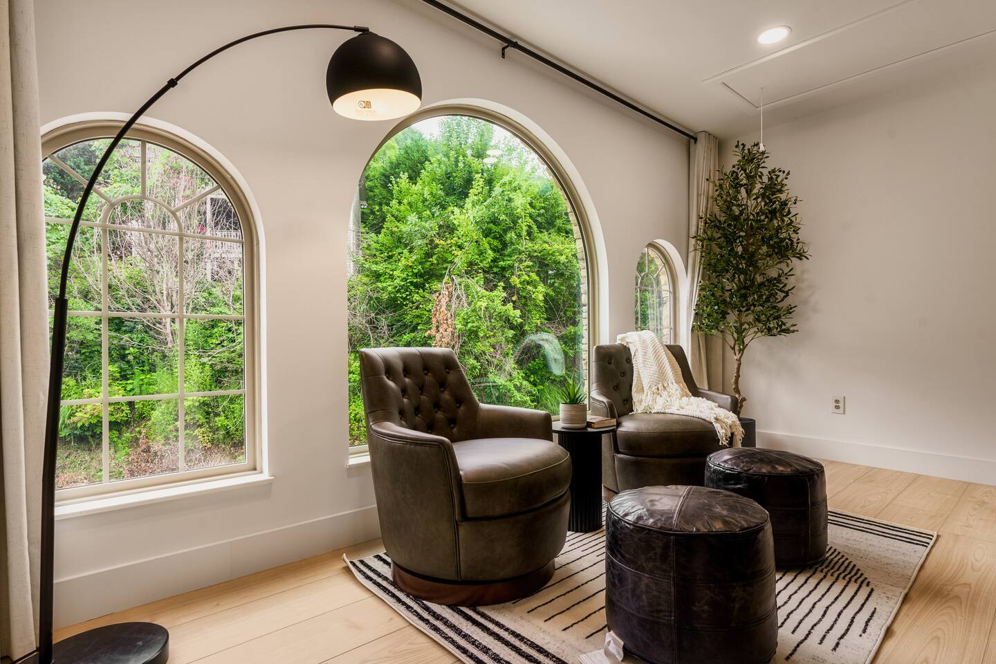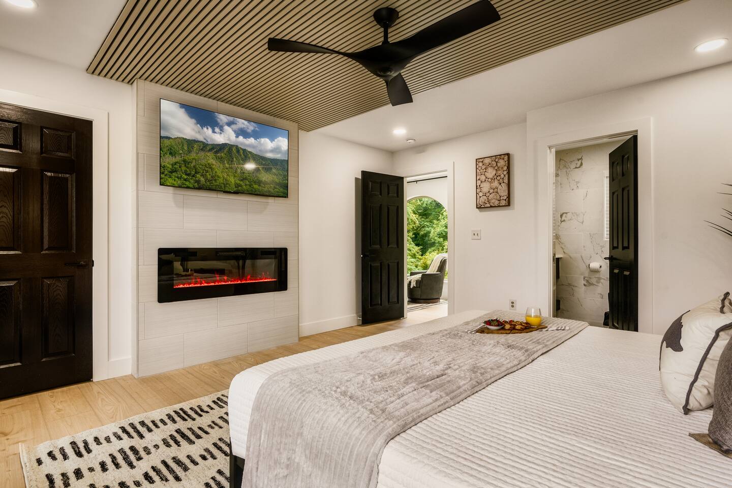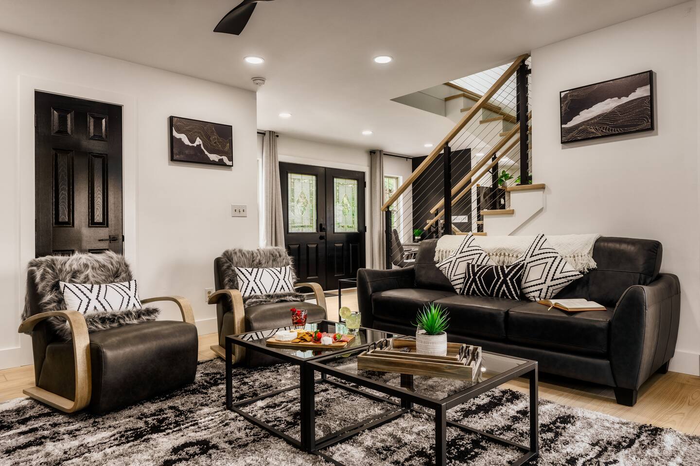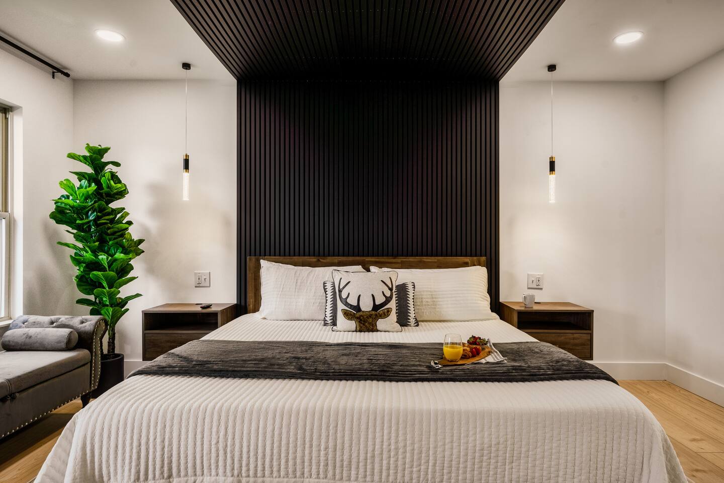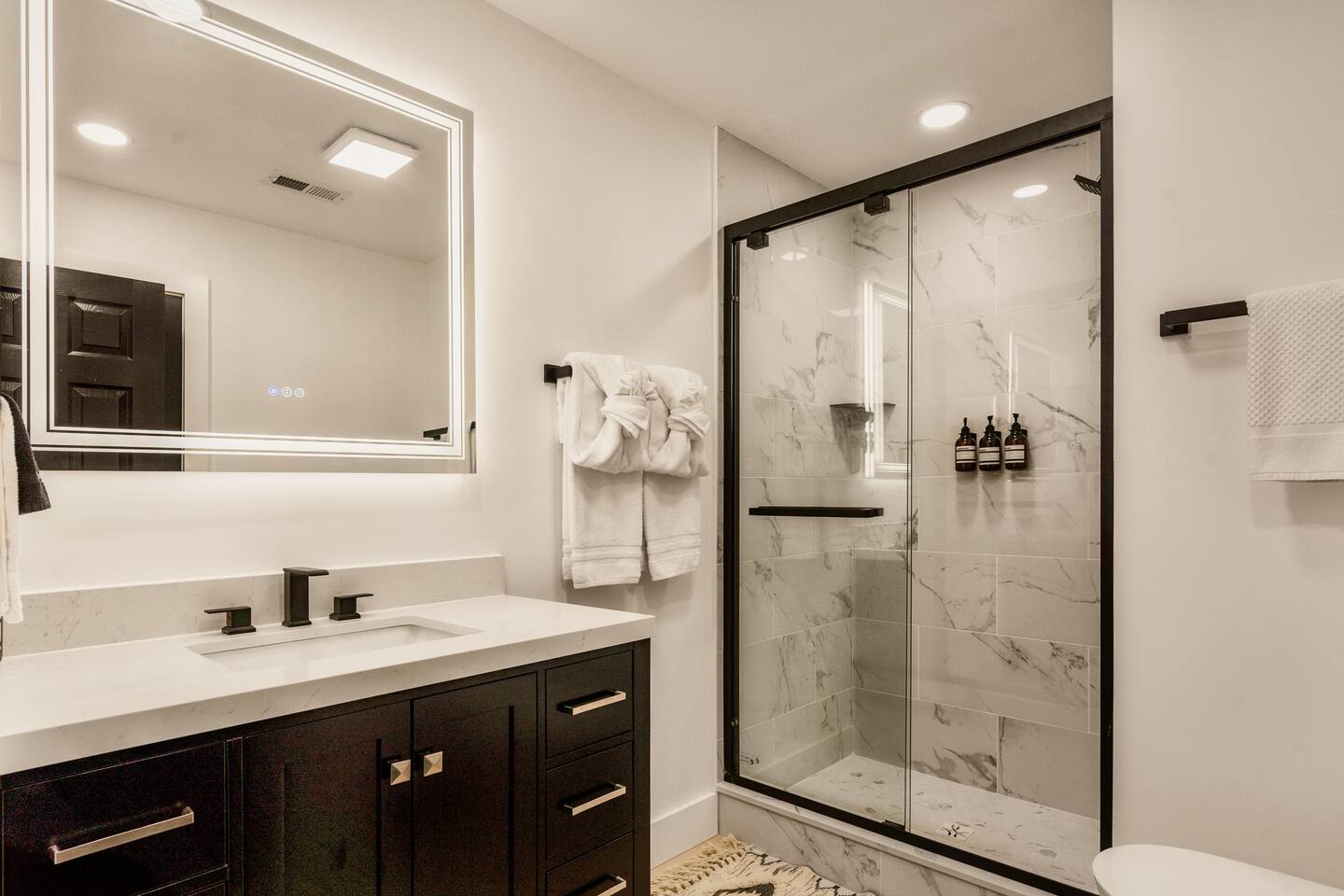 ✹ Stunning Open-Concept Living Area: Features a unique 3-sided electric fireplace, plush leather sofas, and a 65” Smart TV for cozy movie nights. ✹ Gourmet Kitchen & Coffee Station: Fully equipped with stainless steel appliances, stylish pendant lighting, and an espresso machine, K-brew maker, and French press. ✹ Elegant Indoor & Outdoor Dining: Dining table for 8 and a main deck firepit dining table with a Smart TV for dining under the stars. ✹ Luxurious Primary Suite: King bed, custom lighting, electric fireplace, 55” Smart TV, and spa-like ensuite with oversized walk-in shower. ✹ Second Master Suite: King bed, electric fireplace, 55” Smart TV, and ensuite bathroom with a soaking tub for relaxation. ✹ Family-Friendly Bunk Room: Queen-over-queen bunk bed, private bathroom, and fun rock climbing wall for kids under supervision. ✹ Game Room Fun: Pool table, multicade machine, Golden Tee arcade, board games, and 65” Smart TV for endless entertainment. ✹ Three-Level Deck Experience: Lower deck swim spa, main deck firepit dining & egg chair swing, and upper deck with cozy firepit seating. ✹ Private Swim Spa: Exclusive outdoor swim spa on the lower deck, perfect for relaxation while enjoying mountain views. ✹ Prime Location: Just 2 miles from Ober Gatlinburg, perfect for winter sports. Step into the main level, where an impressive open-concept living space welcomes you with its modern three-sided electric fireplace, leather sofas, and designer accent chairs. The 65" Smart TV and designer accent chairs create the perfect setting for cozy movie nights. The gourmet kitchen shines with stainless steel appliances and a contemporary peninsular seating area adorned with stylish pendant lighting. Coffee enthusiasts will appreciate our complete station featuring an espresso machine, K-brew maker, and French press. The elegant dining table seats 8, while the main deck offers an exceptional outdoor dining experience with its firepit table and Smart TV – imagine watching your favorite sports match or show while dining under the mountain sky! The sleeping arrangements are thoughtfully designed across three luxurious bedrooms. The upper-level primary suite features a sumptuous king bed with custom lighting and thoughtfully placed outlets, an electric fireplace for ambiance, a 55" Smart TV, and a spa-like ensuite bathroom with an oversized walk-in shower. The second master suite mirrors this luxury with its own king bed, electric fireplace, 55" Smart TV, and an ensuite featuring a relaxing soaking tub. On the lower level, families will love the third bedroom with its queen-over-queen bunk bed, private bathroom, and a fun rock climbing wall for the kids (under adult supervision, of course). All bathrooms boast modern floating vanities, anti-fog mirrors, and premium toiletries. Entertainment abounds in our professionally equipped game room, featuring a pool table, multicade machine with over 60 classic games, and Golden Tee arcade. A comfortable leather sofa and bar-style seating area create the perfect spot for spectators or game nights, complete with board games and a 65" Smart TV. For outdoor entertainment, enjoy cornhole in the driveway or relax in our three-level deck system. Each deck offers a unique experience: unwind in the private swim spa on the lower deck, enjoy meals at the firepit dining table on the main deck, or gather around the cozy fire pit seating on the upper deck. The egg chair swing provides the perfect perch for taking in the magnificent mountain views, whether you're savoring your morning coffee at sunrise or stargazing in the evening. Families will find everything they need for a comfortable stay, including a pack 'n play, highchair, baby bathtub, and kid-friendly dinnerware. Unwind with exclusive access to three distinct clubhouses, each with its own inviting pool for you to enjoy from Memorial Day through Labor Day. Stay active with a fitness center, challenge yourself on the tennis court, or have fun on two pickleball courts—all designed to make your stay as relaxing or invigorating as you like. The chalet's prime location on Ski Mountain, just 2 miles from Ober Gatlinburg, makes it the perfect winter sports base camp. From mid-November to mid-January, the chalet transforms into a magical holiday retreat with festive decorations throughout. Modern conveniences include free parking for three vehicles and an exclusive EV charging station for our guests. Your perfect mountain getaway awaits with all the essentials provided – just bring your groceries and your sense of adventure! Whether you're seeking a romantic retreat, family vacation, or group gathering, our chalet offers the ideal setting for creating lasting memories in the heart of the Smoky Mountains. *Experience the height of mountain luxury – book your stay today!*
