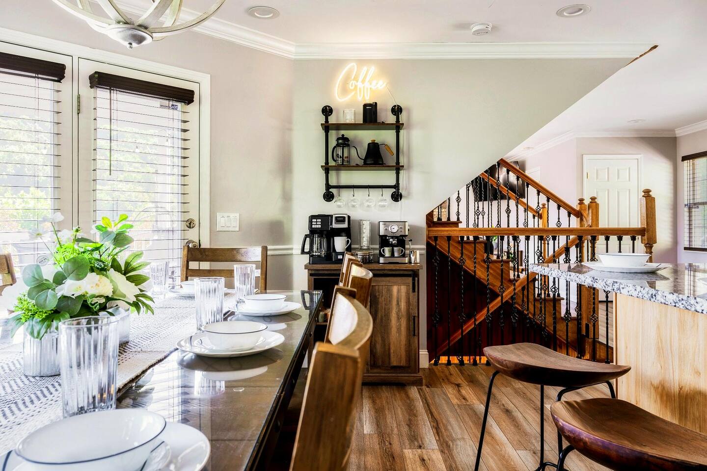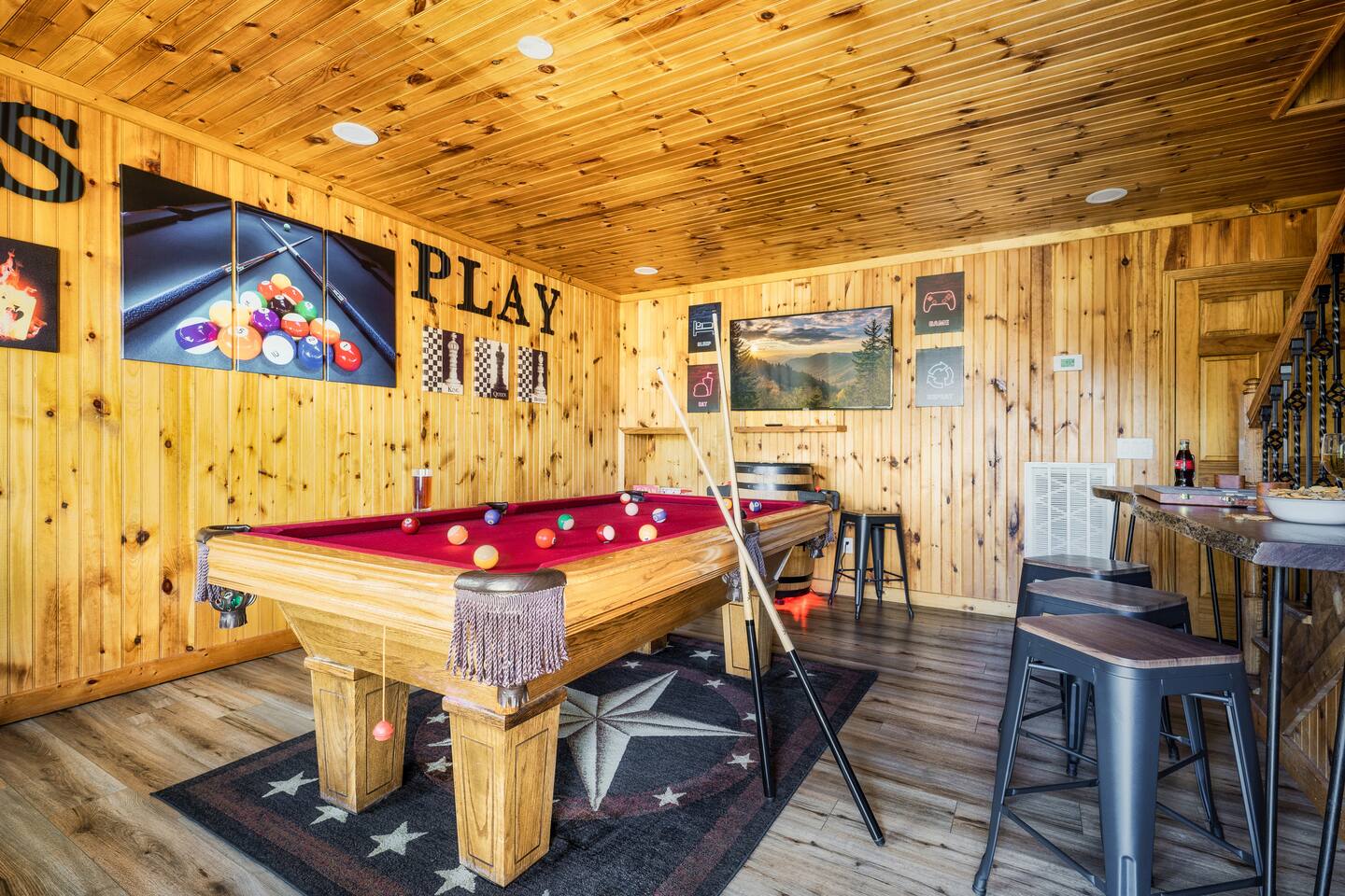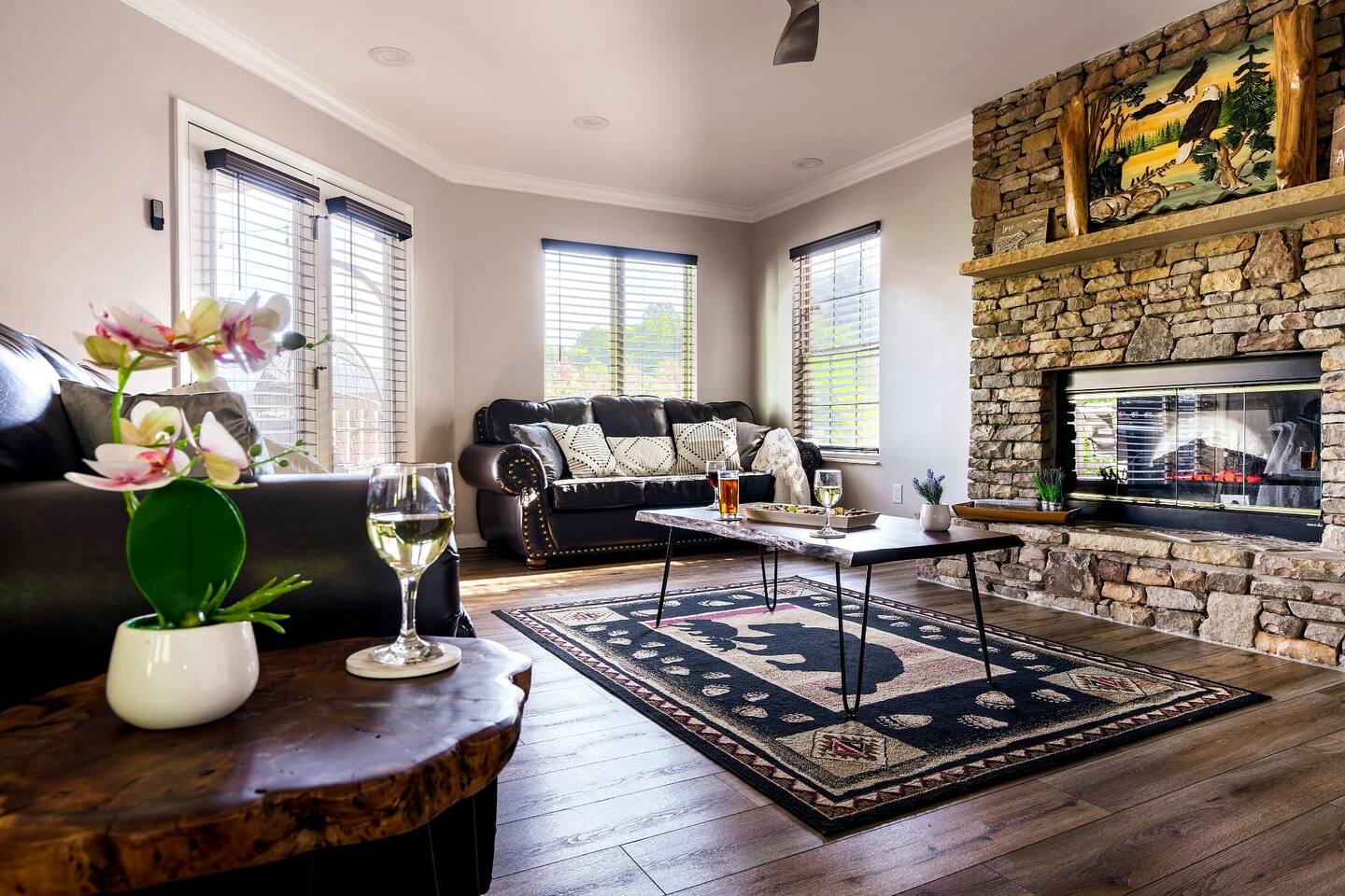 Property at a Glance 🛏️ Sleeps 8 | 3 Bedrooms | 3.5 Bathrooms 🛁 Private Hot Tub with Mountain Views 🎮 Game Room: Pool Table • Foosball • Multicade • Movie Area 🔥 Firepit Table on Deck + Covered Outdoor Seating 🧸 Family-Friendly: Pack ’n Play, High Chair, Toys & More 🍽️ Full Kitchen with Stainless Steel Appliances + Coffee Bar 📶 High-Speed Wi-Fi + Remote Work Setup 🔌 220v EV Charger (Tesla adapter required) 🏊 Clubhouse Seasonal Pool Access 🚗 Parking for 2–3 Vehicles | Paved Roads | Easy Access Welcome to Mountain Moonrise, a refined 3-level chalet that effortlessly blends luxury, comfort, and Smoky Mountain charm—designed with families and multi-generational groups in mind. Located just minutes from Gatlinburg and Ober Mountain, this retreat offers breathtaking views, thoughtful amenities, and unforgettable experiences. 🛏️ Bedrooms & Layout Enjoy the privacy and space of two king suites, each with its own ensuite bathroom and stunning mountain views—ideal for parents or grandparents seeking a restful retreat. Downstairs, the cozy bunk room with solid farmhouse-style beds is perfect for kids or additional guests. A charming reading nook upstairs offers a peaceful spot to sip your morning coffee while watching the sunrise. ✔ 3 Bedrooms | Sleeps 8 ✔ 3.5 Bathrooms ✔ 2 King Suites + Bunk Room ✔ Scenic Reading Nook with Mountain Views 🚿 Bathroom Comforts Unlike standard cabin stays, our bathrooms are stocked for true comfort and convenience. No tiny hotel bottles here—we provide full-size, high-quality toiletries so you can travel light and feel at home. ✔ Walk-In Showers ✔ Full-Size Shampoo, Conditioner & Body Wash ✔ Hand Soap + Hairdryers in Every Bathroom 🍽️ Main Living Space The open-concept kitchen, dining, and living area is the heart of the home, filled with mountain light and anchored by a cozy electric fireplace. The chef-ready kitchen features stainless steel appliances and a full coffee bar to fuel your mornings. ✔ Full Kitchen w/ Modern Appliances ✔ Coffee Bar (Espresso Machine + K pod + Drip) ✔ Dining Area with Scenic Windows ✔ Cozy Electric Fireplace & Smart TV for Family Movie Nights 🎮 Entertainment & Game Room The lower level is a family favorite, offering something for everyone—from competitive fun to movie night bonding. Whether it’s rainy day play or evening laughs, this space delivers. ✔ Pool Table ✔ Foosball Table ✔ Multicade Arcade ✔ Movie Lounge Area ✔ Board Games 🌄 Outdoor Living Step out onto any of the three scenic decks to take in the incredible Smoky Mountain views. Whether you're grilling with family, soaking in the private 6-person hot tub, or sharing stories by the firepit, the outdoors here are just as memorable as the inside. ✔ 3 Scenic Decks with Mountain Views ✔ Firepit Table for S’mores & Stargazing ✔ Covered Lounge Area ✔ Gas Grill & Outdoor Dining ✔ Private Hot Tub with View 👶 Family-Friendly Amenities Traveling with kids is easy here. We’ve thoughtfully stocked the chalet with items that make parenting on the go more convenient—so you can pack lighter and focus on the fun. ✔ Pack ’n Play ✔ High Chair & Baby Bathtub ✔ Kids’ Utensils, Books & Toys for early readers 🔌 Extras That Matter From convenience to eco-conscious travel, we’ve included everything to elevate your stay. ✔ High-Speed Wi-Fi ✔ Remote Work Desk + Chair ✔ 220v EV Charger (Tesla adapter required) ✔ Clubhouse Seasonal Pool Access ✔ Paved Roads + Parking for 2–3 Vehicles 📍 Location Highlights • 2 miles (6 minutes) to Ober Gatlinburg • 10 minutes to Downtown Gatlinburg • 20 minutes to Dollywood & Pigeon Forge • Close to hiking, scenic drives, and Smoky Mountain adventures Whether you’re watching the sunrise with coffee in hand, roasting s’mores under the stars, or sharing a laugh in the game room, Mountain Moonrise invites you to slow down, reconnect, and make lifelong memories in the mountains.
