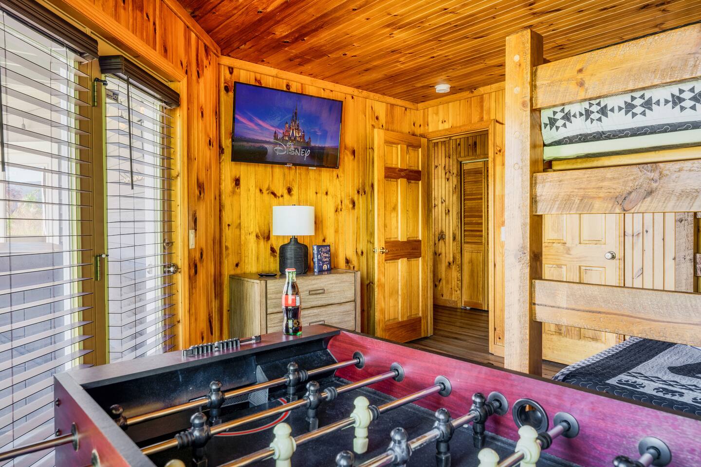 Escape to Mountain Moonrise—a 3-level family-friendly chalet with breathtaking Smoky Mountain views! Just minutes from Gatlinburg, enjoy 2 king suites, a bunk room, 3 scenic decks, private hot tub, firepit, and a game room with pool table, foosball, and arcade. Includes access to the clubhouse’s seasonal resort pool, 220v EV charger, and high-speed Wi-Fi. Kid-friendly touches included. Watch the sunrise, roast s’mores by the fire, and savor mountain adventures in comfort and style.